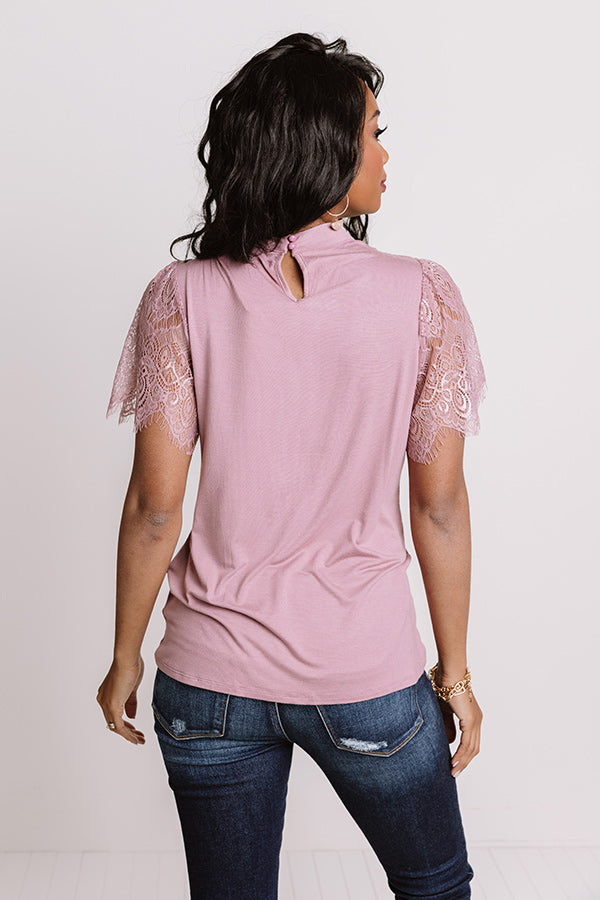 Add a dainty side to your wardrobe with our elegant dusty purple colored "Breaking News" top featuring lightweight material, semi-sheer lace detailing around the v-cut neckline with solid colored 2-inch shoulder straps, short lace sleeves with zigzag trim detailing, a high collared neckline with a keyhole accented back button closure, and a flattering silhouette that ends in a straight hemline!