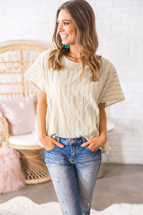 Take it BREEZY in this striped sweetie! This woven cotton cutie has short sleeves, an ultra relaxed bodice & a high-low bottom hem that's perfect for tucking into a pair of cut-off shorts. Complete this "casual cute" look with your favorite pair of wedges for a timeless look you are sure to repeat time & time again.