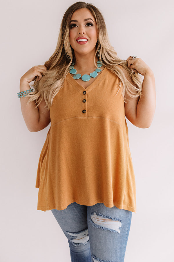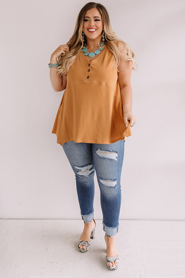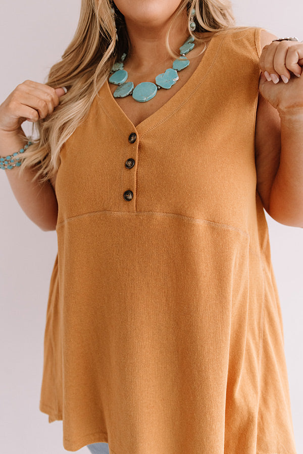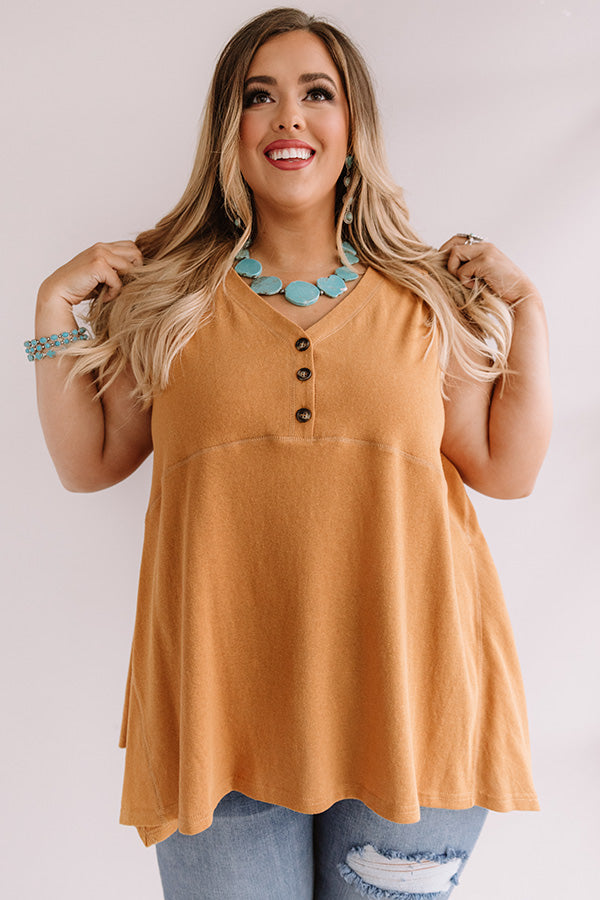 Plus Size - There is no better piece to layer up with for those "breezy nights" than this basic camel colored shift tank featuring soft lightweight material, a button up bodice with a v-cut neckline, wide 3-inch shoulder straps, and a relaxed babydoll silhouette that falls into an uneven tunic-length hemline! This perfect wear anywhere piece can be styled a variety of ways, like solo with some distressed ankle skinnies, turquoise jewelry, and snake print heels, or you can wear also wear it layered under our "Divine In Destin Knit Cardigan in Grey" with some white flares, "The Seraphina Faux Leather Wedge in Grey," and our "Glam Expectations Faux Leather Clutch in Camel!" Measurements