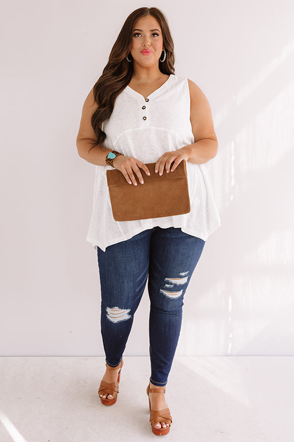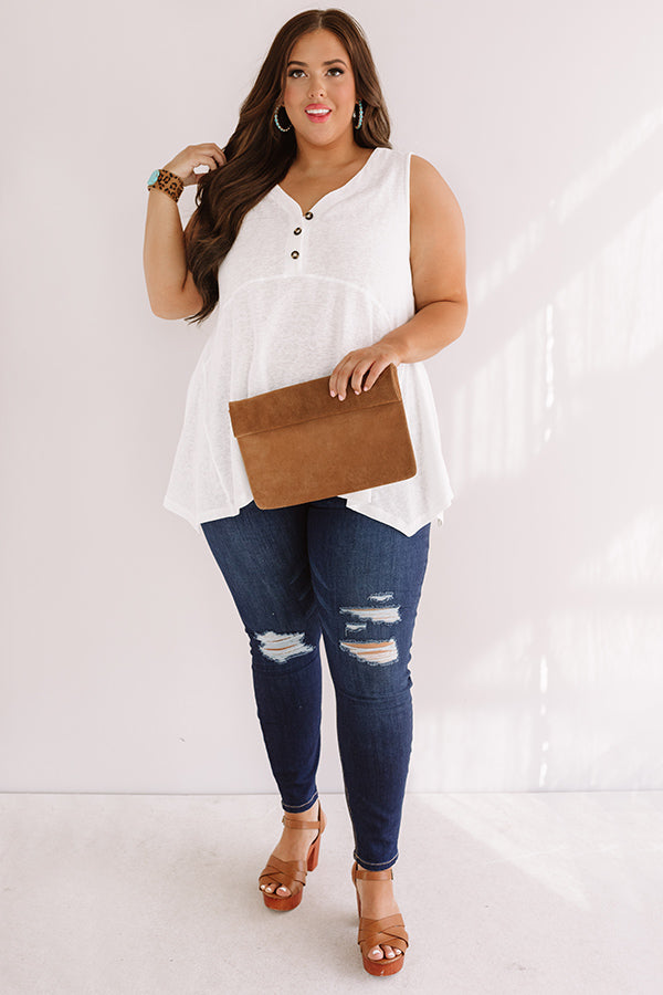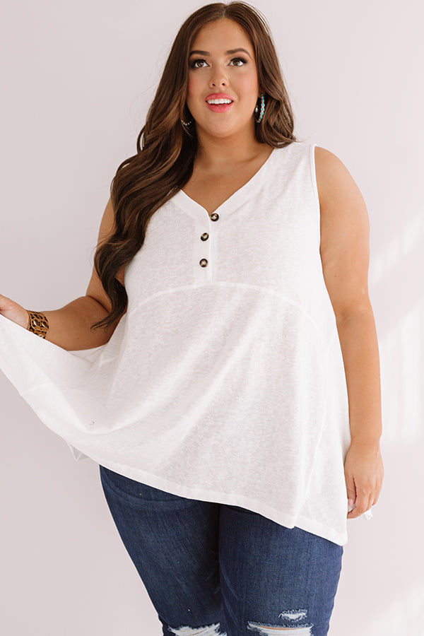 Plus Size - There is no better piece to layer up with for those "breezy nights" than this basic ivory shift tank featuring soft lightweight material, a button up bodice with a v-cut neckline, wide 3-inch shoulder straps, and a relaxed babydoll silhouette that falls into an uneven tunic-length hemline! This perfect wear anywhere piece can be styled a variety of ways, like solo with some distressed ankle skinnies and a brown heel and clutch, but you can also wear it layered under a grey cardigan with some black flares, "The Allen Wedge in Snake Print," and a snake print hair scarf! Measurements