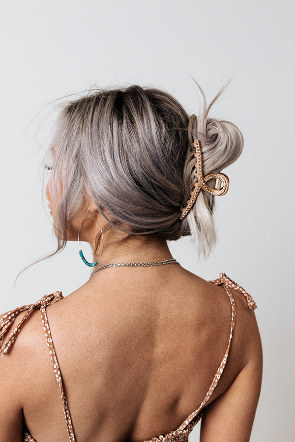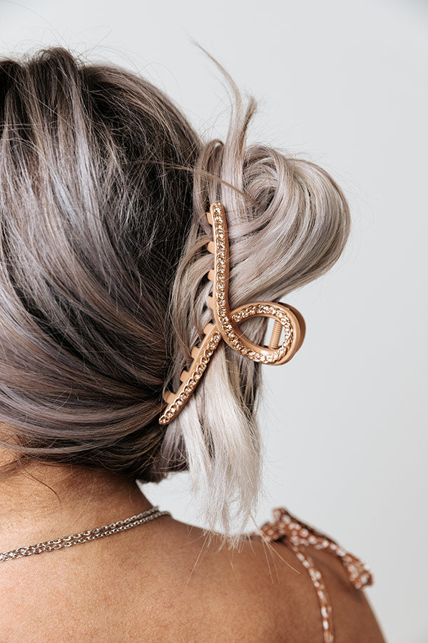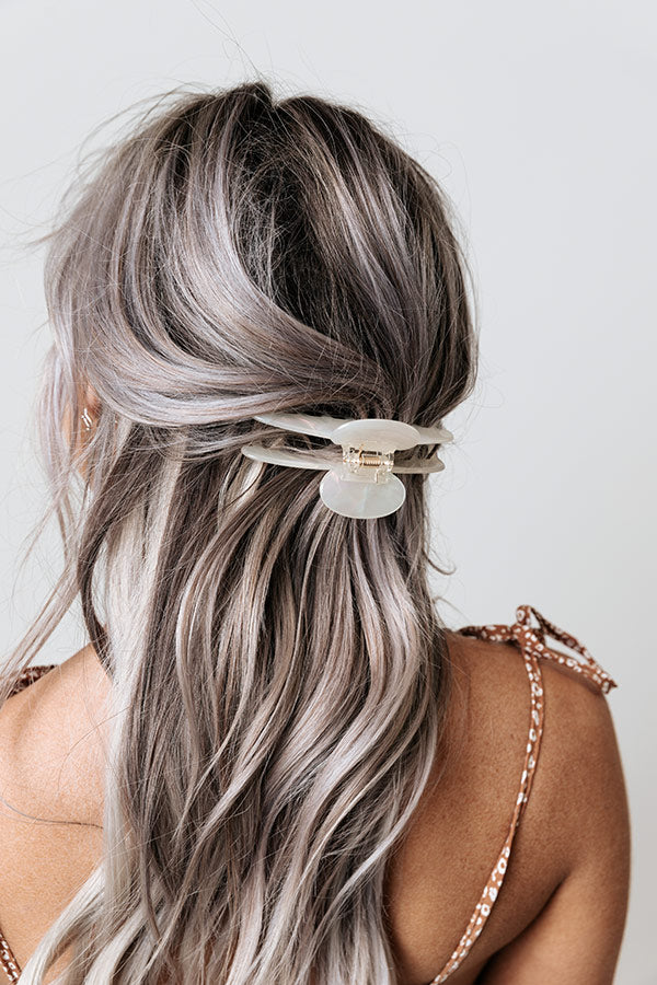 Arrive in style will your hair looking effortlessly chic in our luxe 'Brentwood Brunch' claw clip set of two featuring a latte colored looped one with rhinestone accents and an iridescent pearl one!