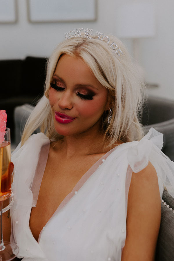 - Features a silver band with rhinestone 'BRIDE TO BE' design