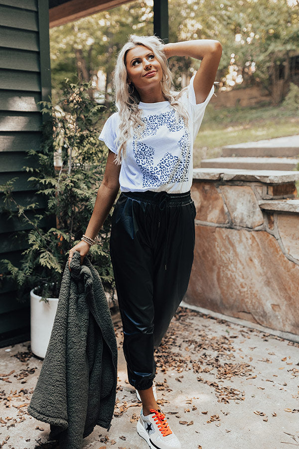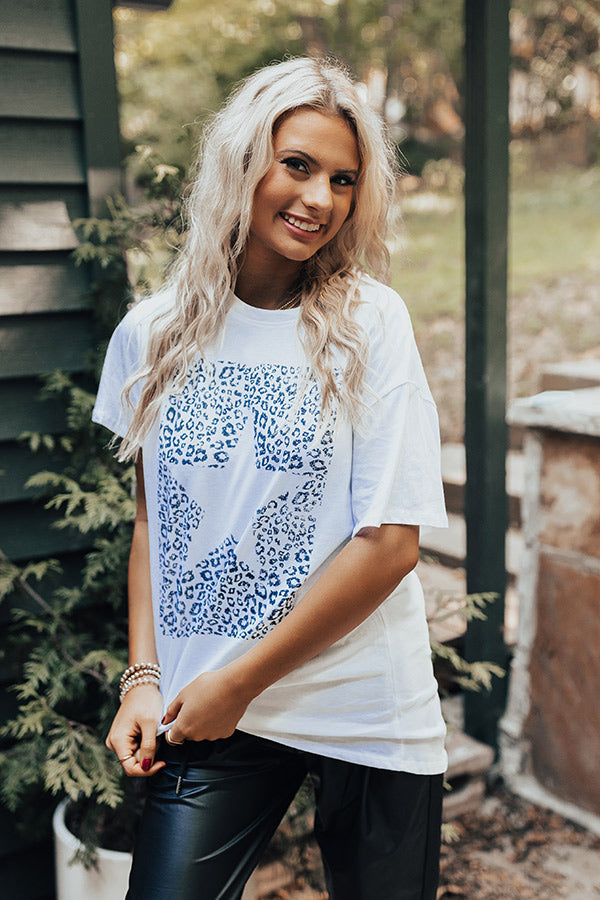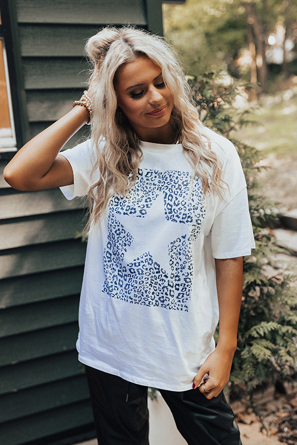 Shine bright in this adorable white tee featuring soft lightweight material with a leopard print star graphic on the front, a rounded neckline, short sleeves, and a relaxed silhouette that falls into a straight hemline! Measurements