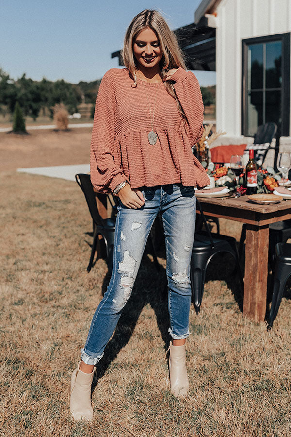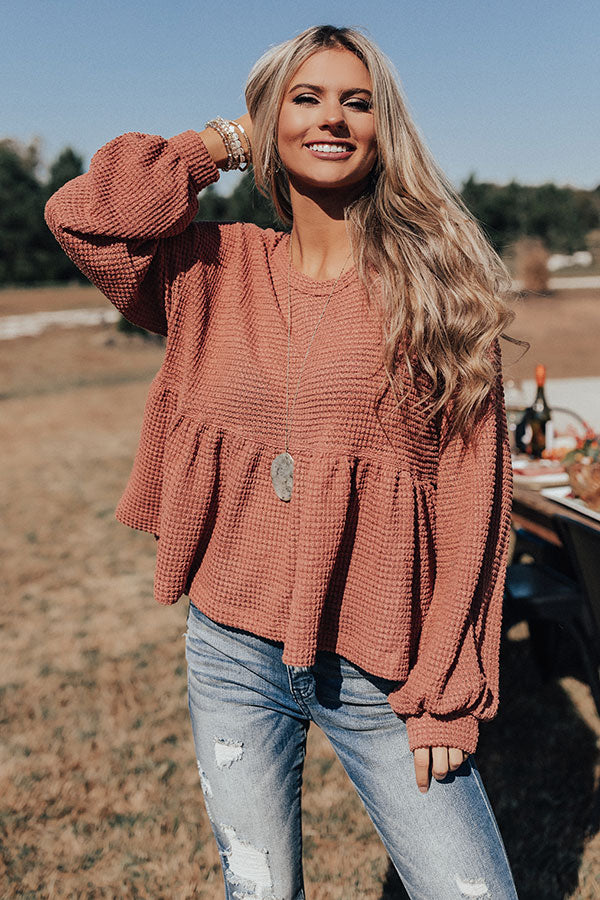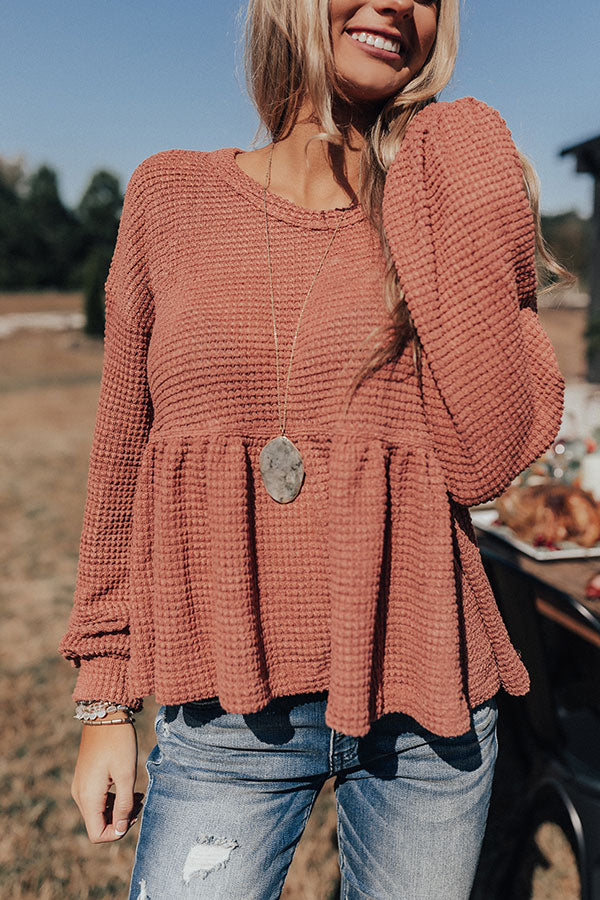 Bring It On Waffle Knit Shift Top In Rustic Rose