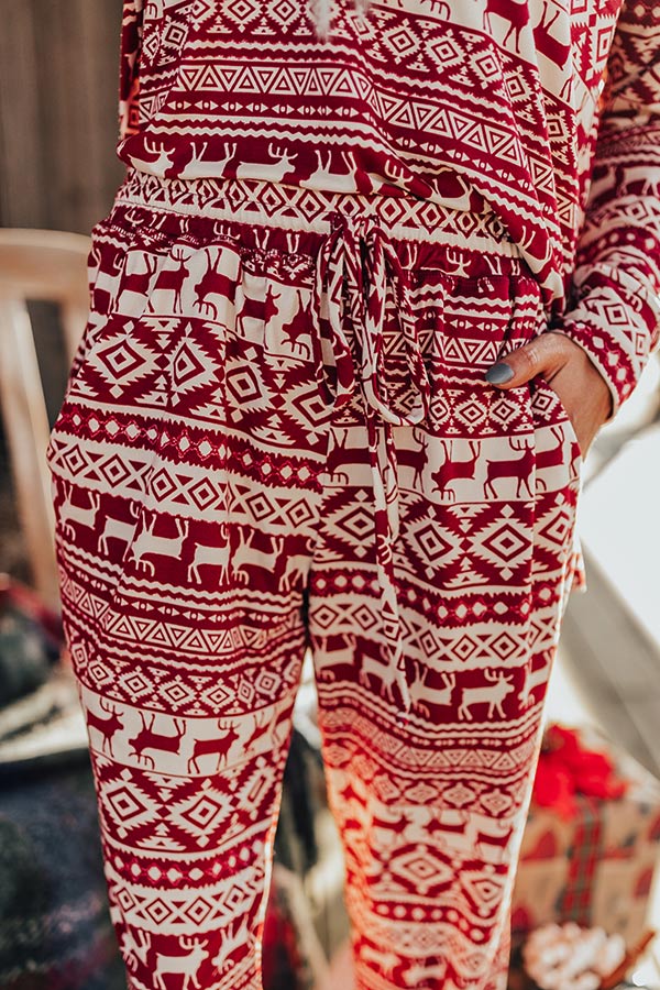 These darling red pajama or lounge joggers are sure to bring you joy with their soft lightweight material, adorable white Christmas pattern, elastic waistline with a tie belt, accent side pockets, and slouched pants silhouette that tapers into fitted ankle-length hemlines! Style with our 'Bringing Joy Top' for the ultimate two-piece holiday set! Measurements