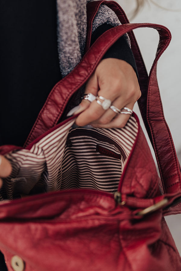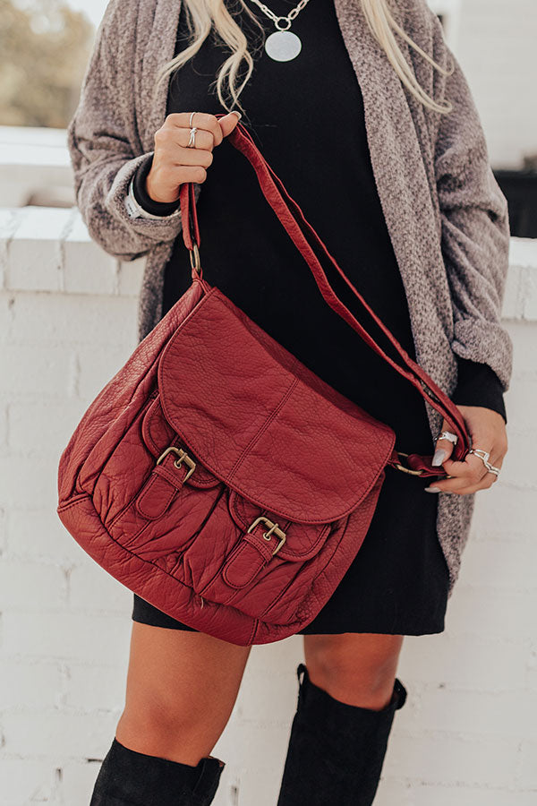 This stunning aurora red crossbody is your ticket to style with its sleek faux leather material, adjustable shoulder strap, two front buckle closure accent pockets and a zip closure back pocket, and a spacious lightweight fully lined pouch with additional inside pockets and a zip closure that also snaps closed with a flap!
