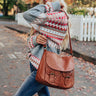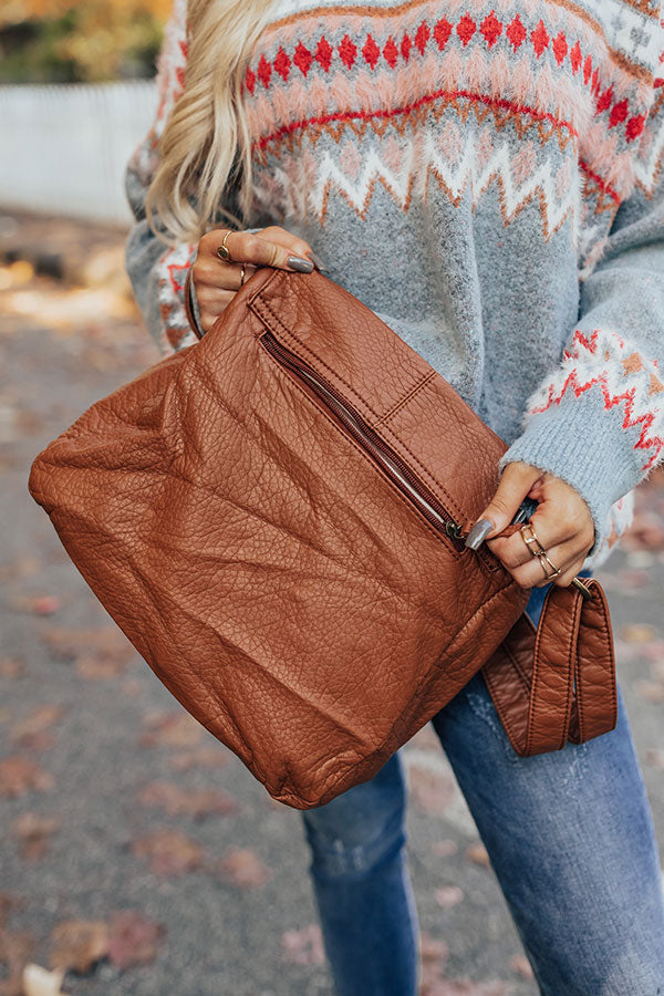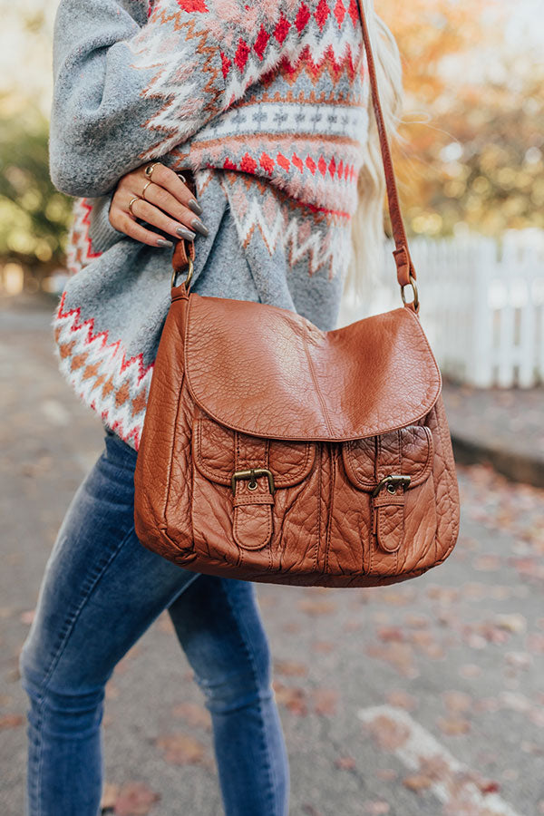 This stunning brown crossbody is your ticket to style with its sleek faux leather material, adjustable shoulder strap, two front buckle closure accent pockets and a zip closure back pocket, and a spacious lightweight fully lined pouch with additional inside pockets and a zip closure that also snaps closed with a flap!