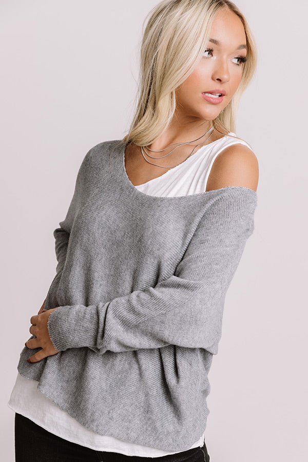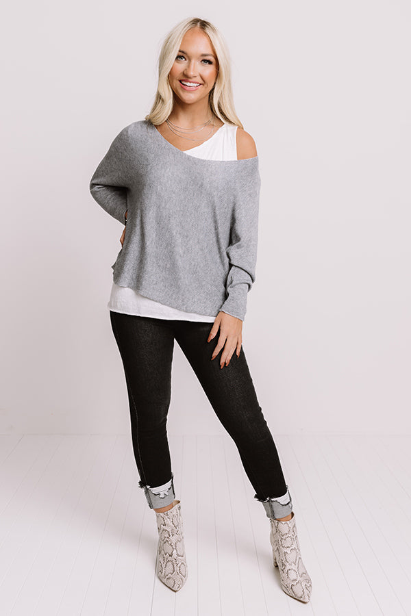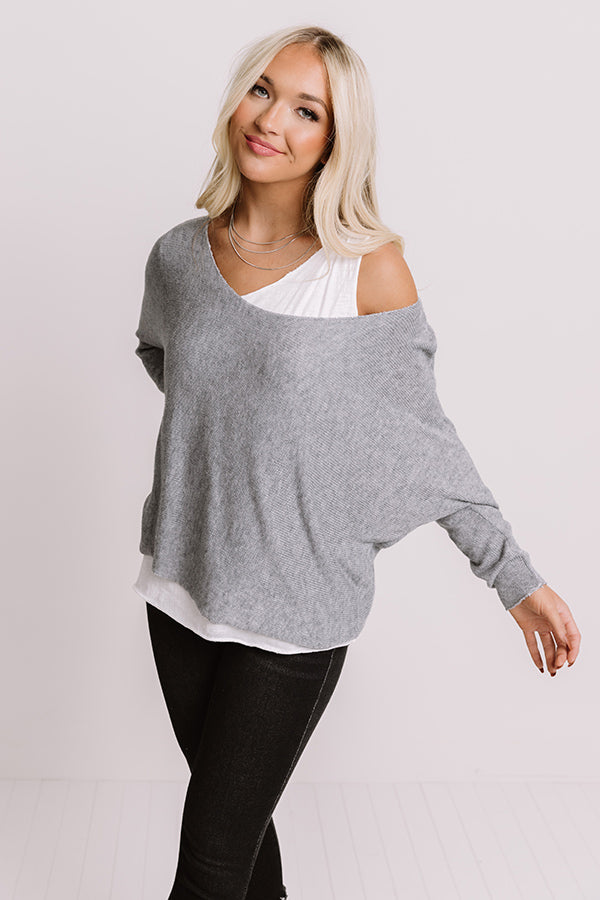 Believe us when we say our casual slate colored "Brooklyn Bridge Top" is a closet essential with its soft lightweight tight knit material, wide rounded neckline, loose 3/4-length sleeves, and slouched silhouette that ends in a straight hemline! PLUS, it includes a white layering tank underneath!