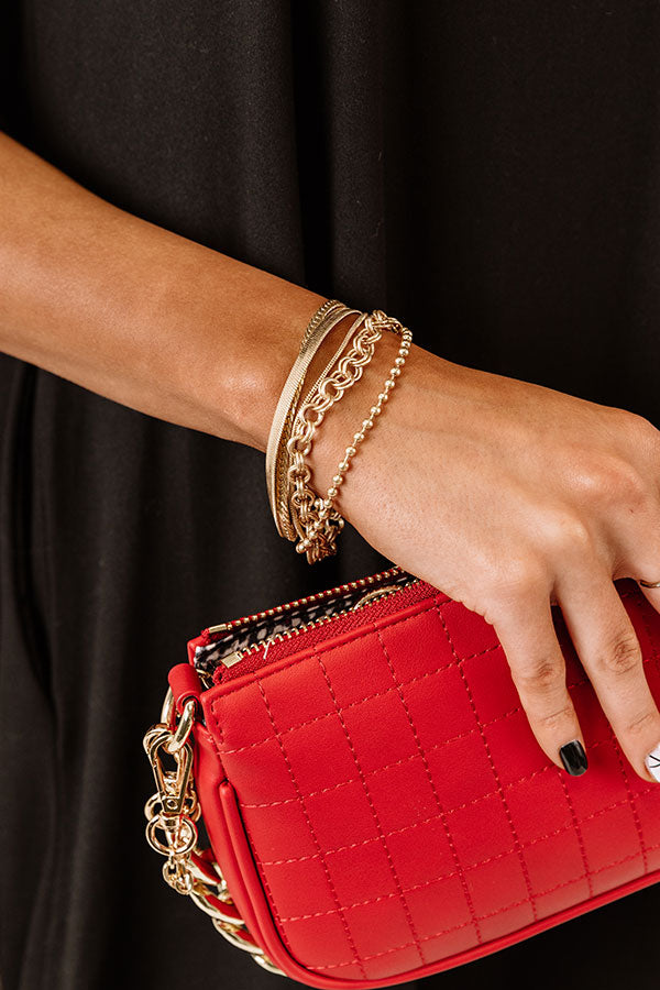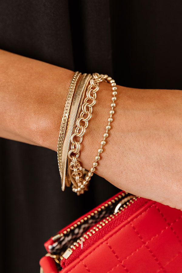 Add to your arm candy in the best way with our charming 'Brooklyn Views Bracelet' featuring five various gold chains!