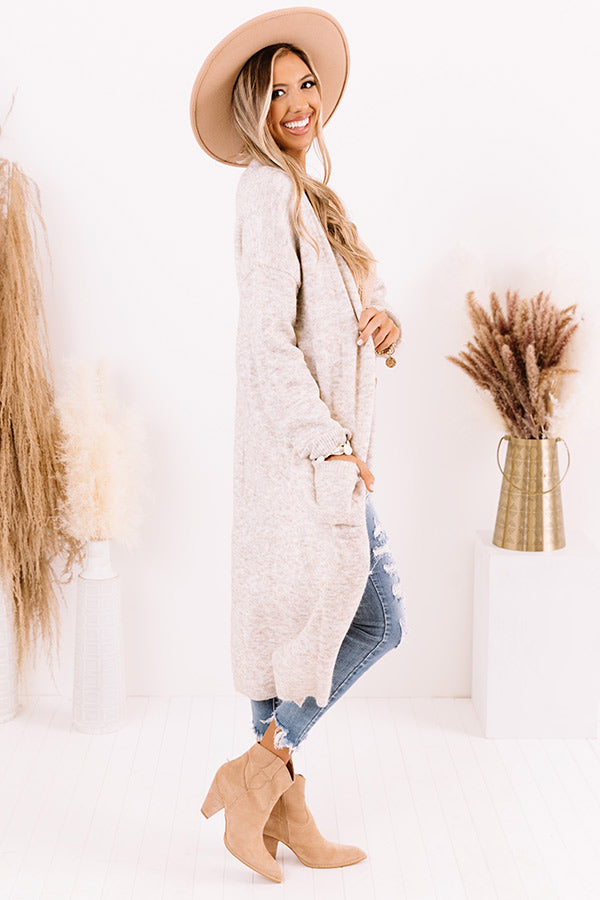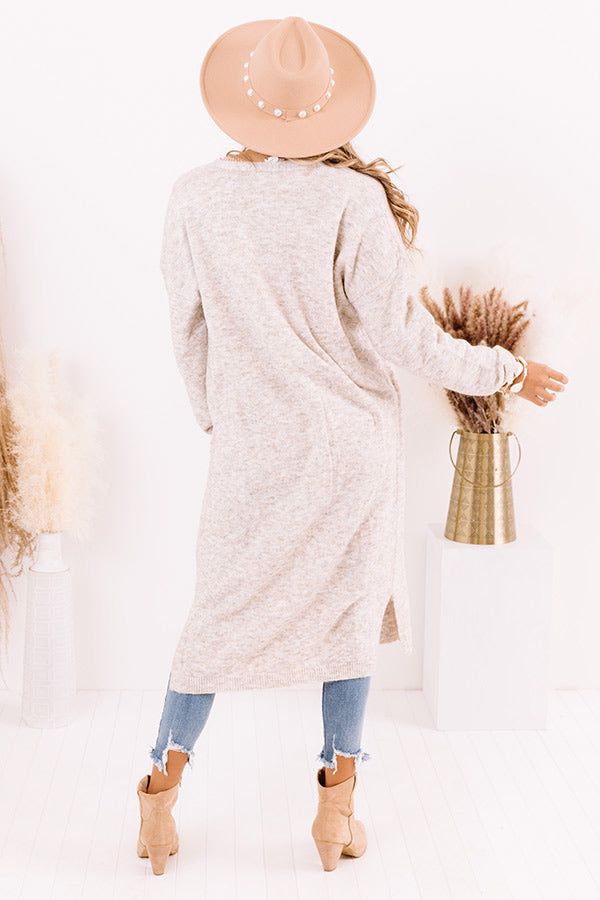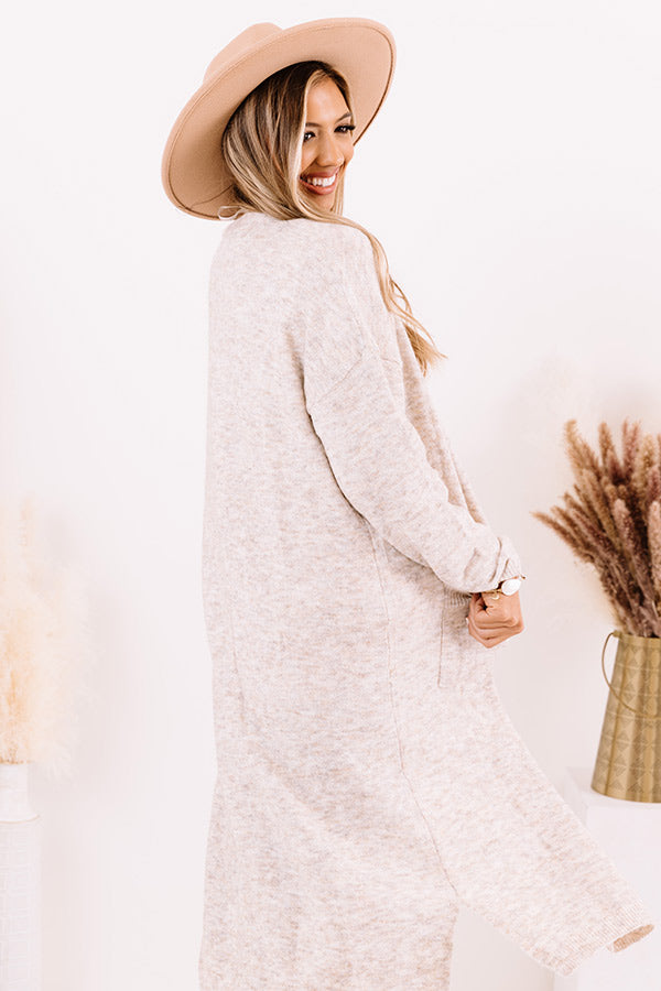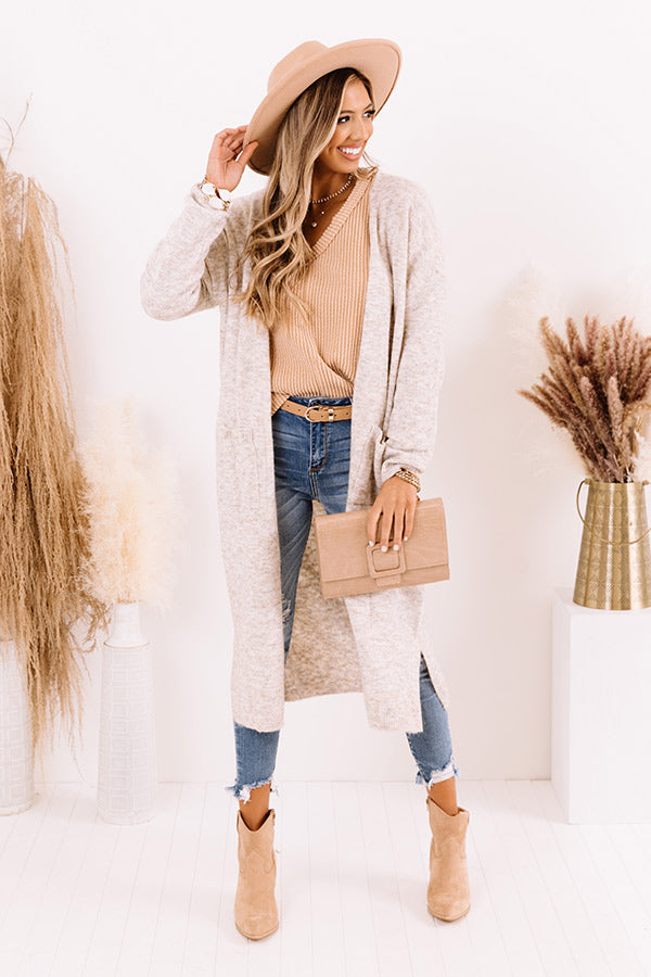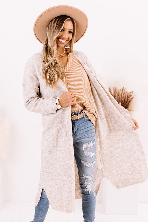 Drape yourself in style with our darling birch colored 'Brooklyn Views Duster Cardigan' features ultra lightweight and soft tight knit material, ribbed trim detailing, long loose sleeves, low side pockets, and a relaxed open front silhouette that cascades into a straight mid-calf length hemline with accent side slits! Measurements