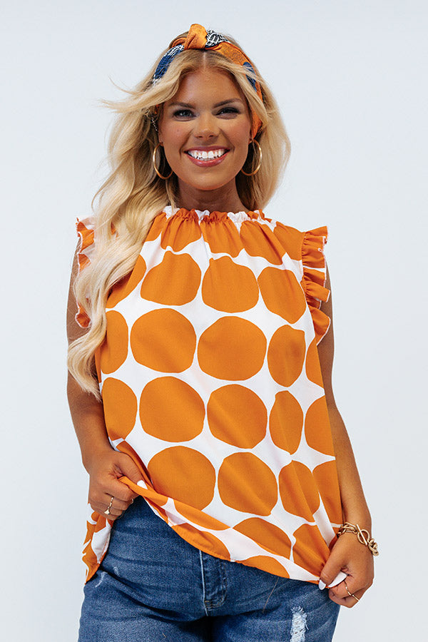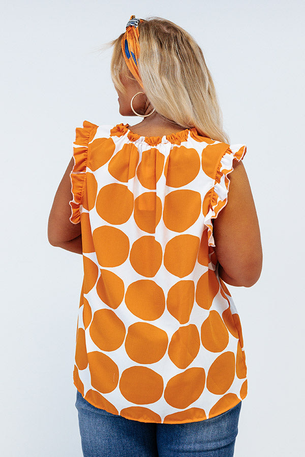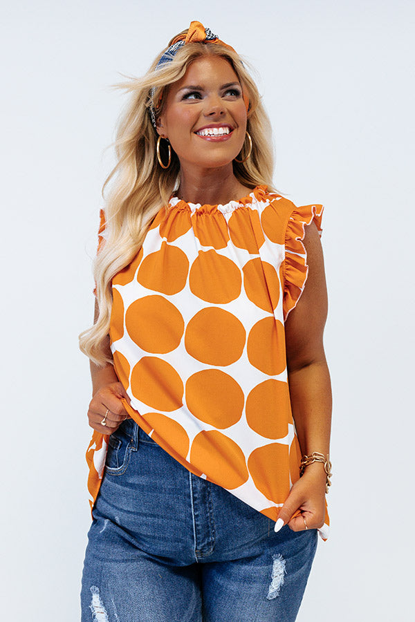 There is no better piece to throw on and go with than this eye-catching plus size shift top featuring lightweight material patterned with large orange polka dots, a rounded neckline, ruffled cap sleeves, and a relaxed silhouette that falls into a straight hemline! on products Measurements