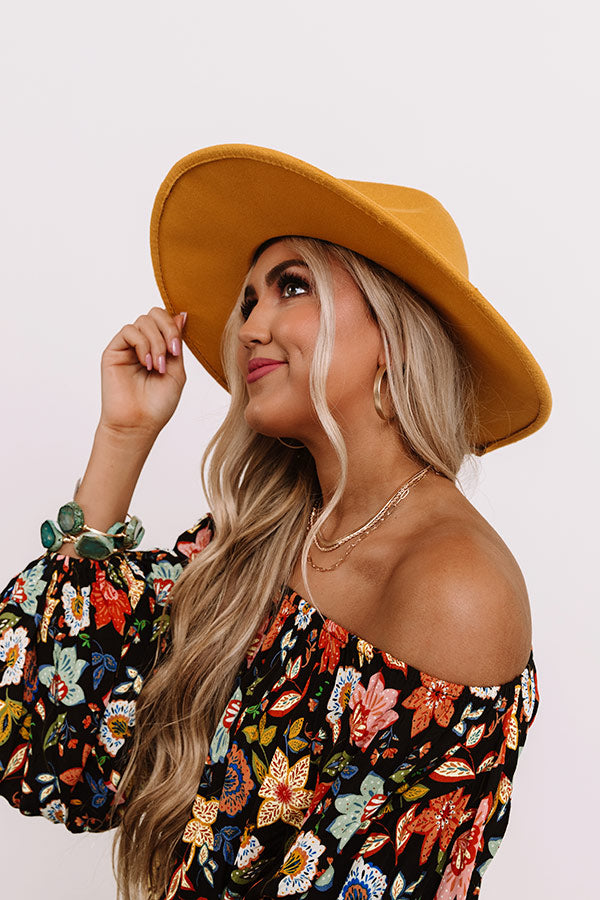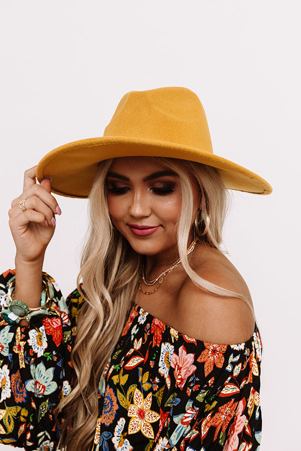 Make an entrance in our eye-catching mustard colored "Brunch Babe" hat featuring soft lightweight felt material and a wide stiff brim!