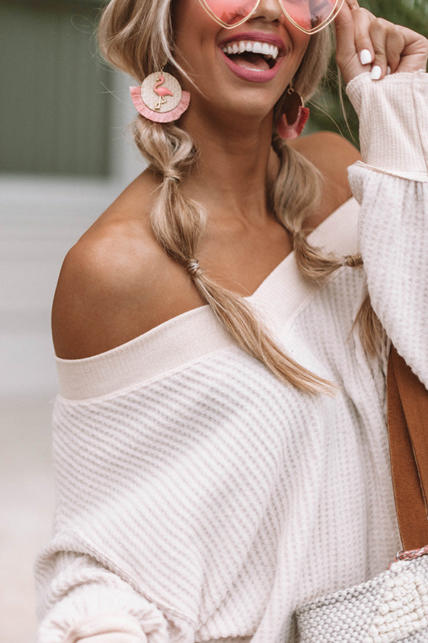 Brunch On Broadway Waffle Knit Top In Iced Latte