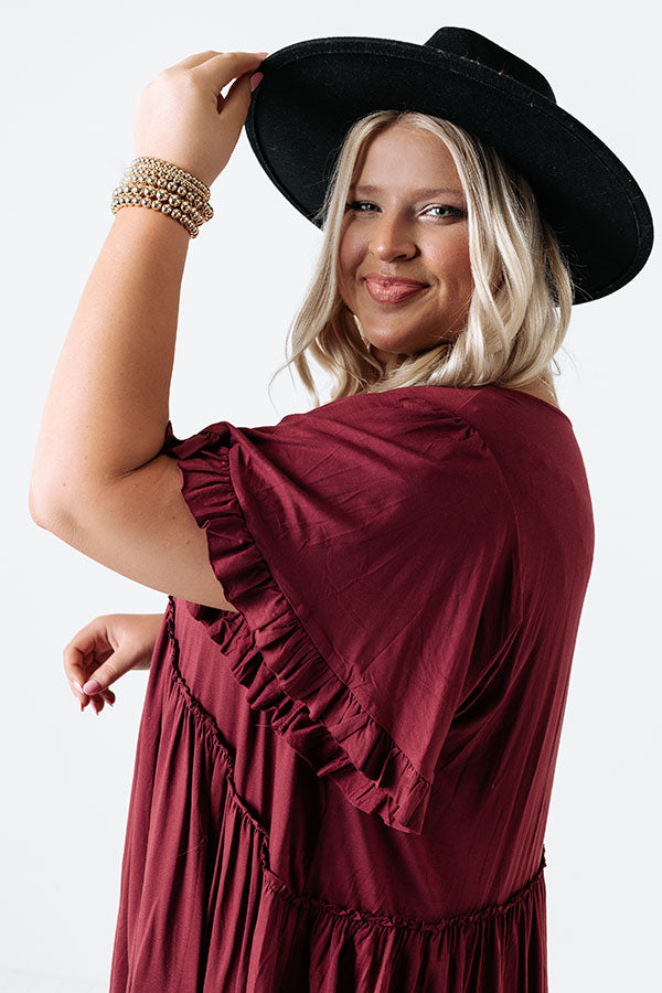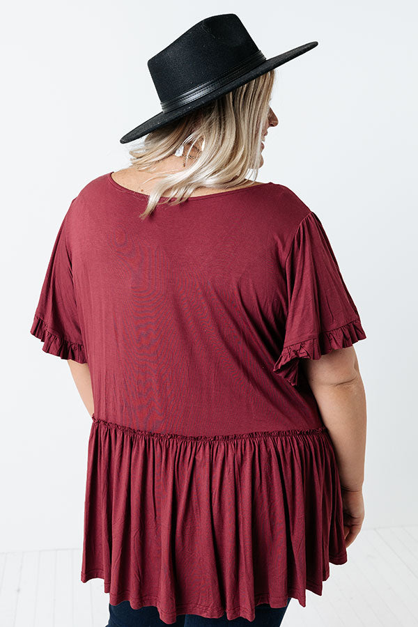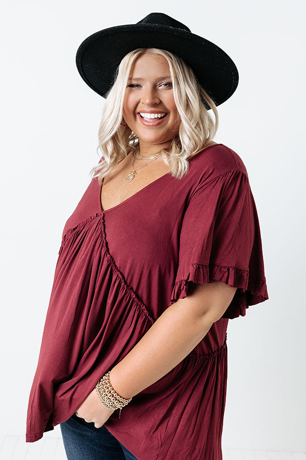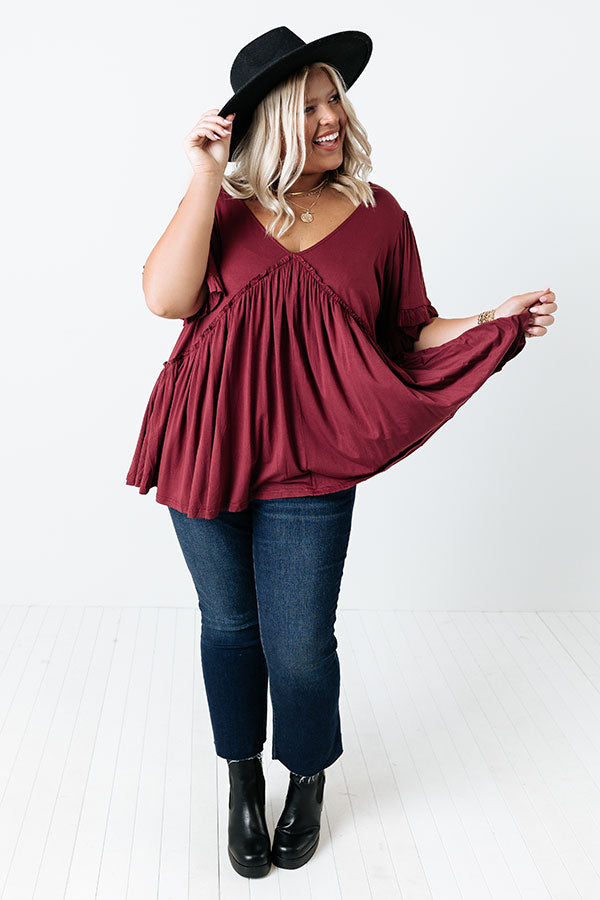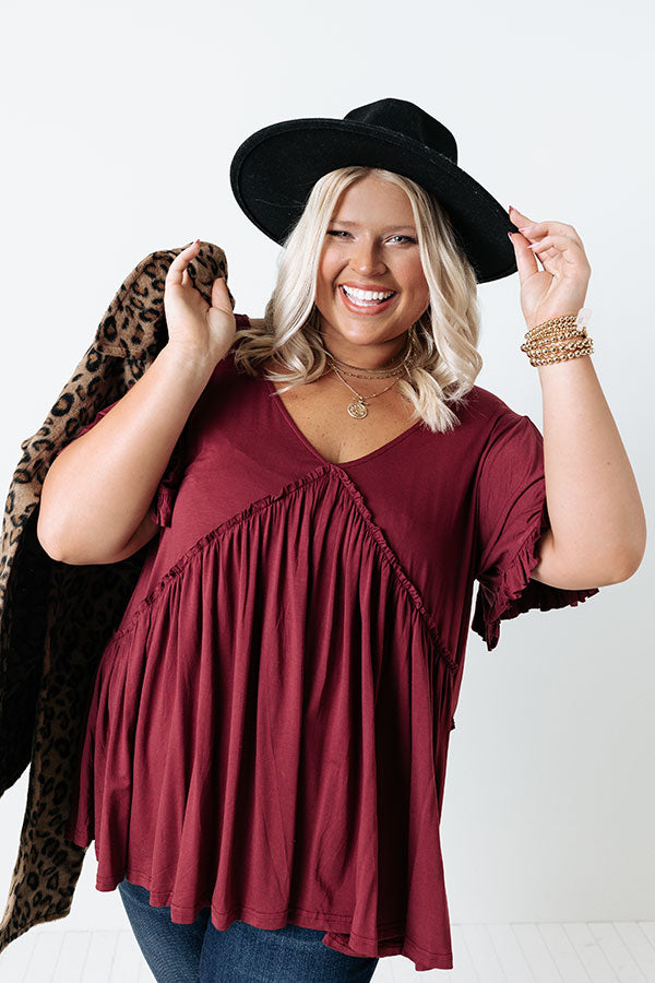 Brunchin' Babe Babydoll Top In Merlot Curves