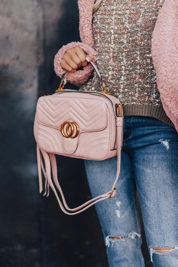 There is no better accessory to complete your OOTD with than our blush colored "Bryant Park Views" crossbody featuring sleek faux leather material with quilted texturing, a removable and adjustable shoulder strap, one tote handle, an outside pocket with a flap button snap closure, accent zipper tassels, and a spacious fully lined rectangular pouch with a zip closure and additional inside pockets!