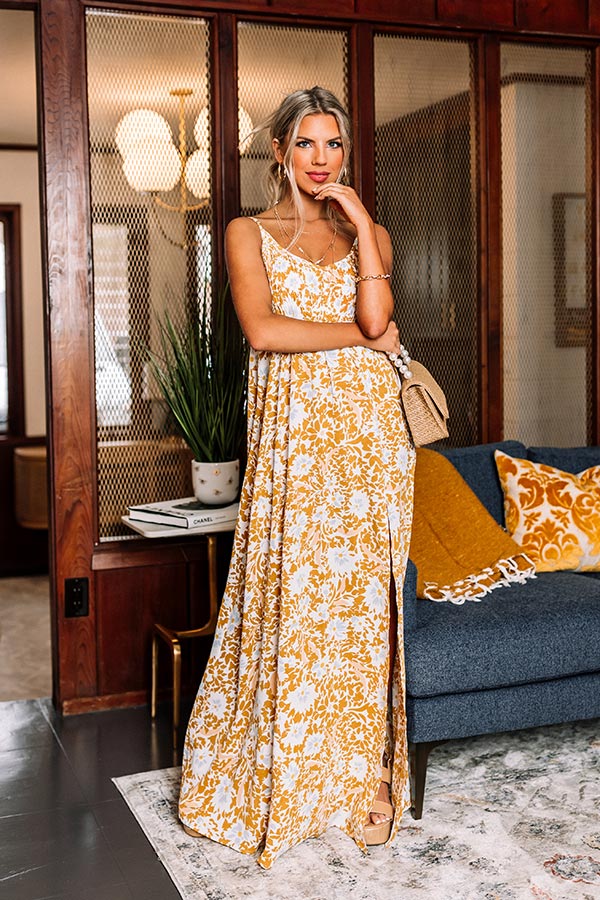 Twirl from season to season effortlessly in our darling 'Bungalow Bound' maxi dress featuring lightweight breezy material patterned with a white and light blue hued floral print, a v-cut neckline with adjustable spaghetti straps, and a relaxed silhouette that cascades into a straight floor-length hemline with a high accent side slit!