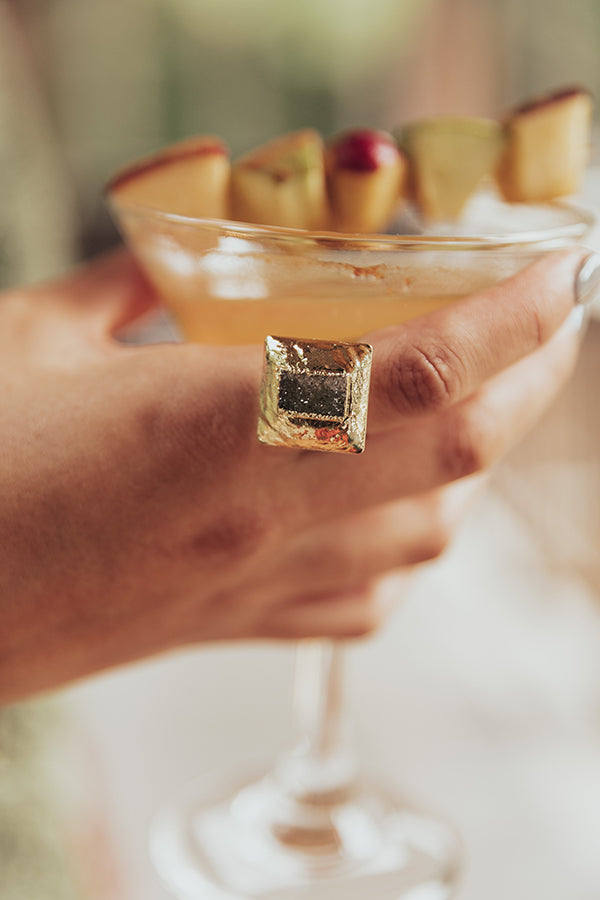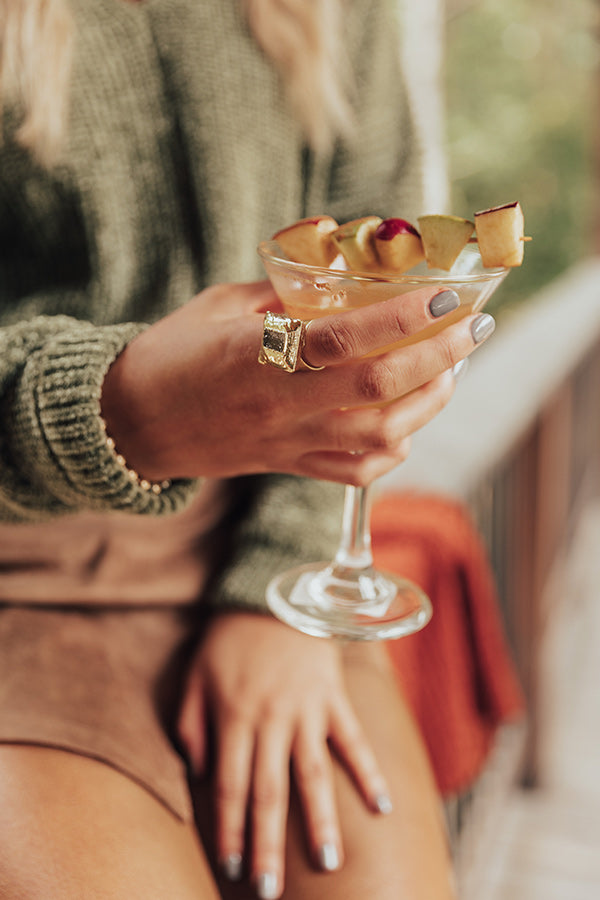 Make a subtle statement with our gorgeous 'Buried Treasure' ring featuring a square olive colored druzy stone set inside a gold square setting! Due to this being a natural stone there may be some variations in color, shape, and size.