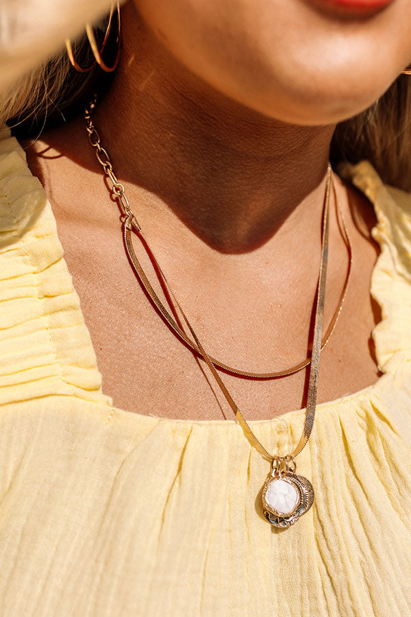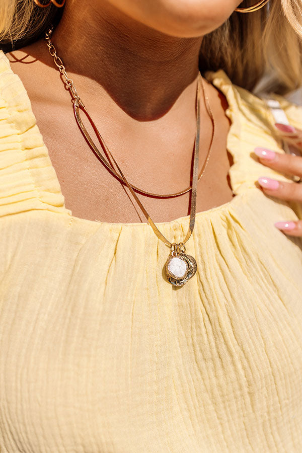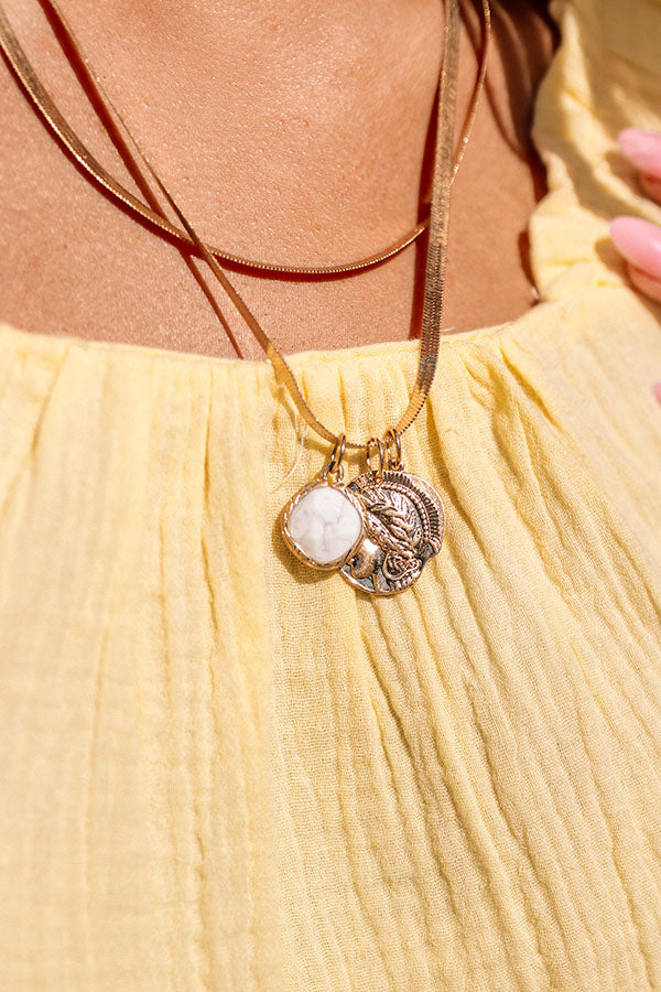 There is no better piece of jewelry to throw on and go with than our luxe 'Busy In The City' necklace featuring two layered snake chains with a pearl and gold coin charm accents!