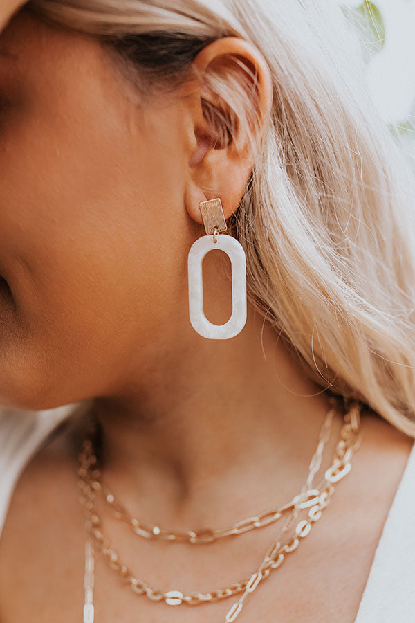 You will look like a total babe in these adorable earrings featuring small gold rectangle studs and dangling white rectangle hoops!