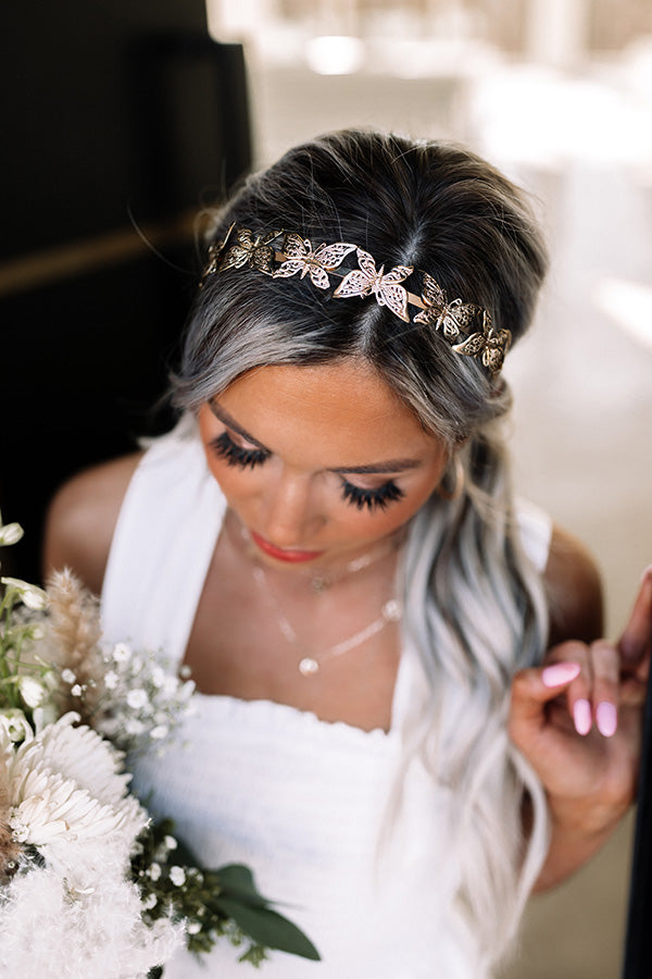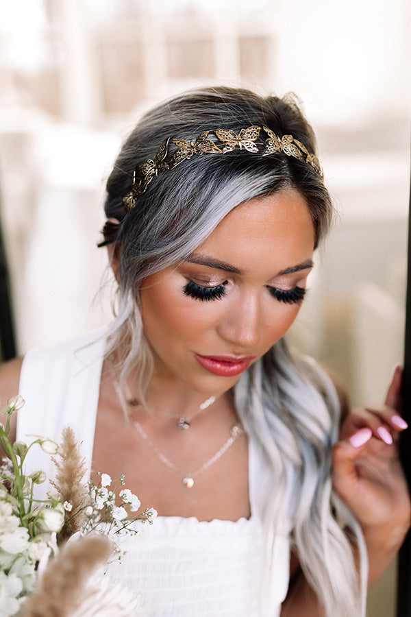 have dun with your hairstyle with our darling 'Butterfly Kisses Headband' featuring gold butterflies!