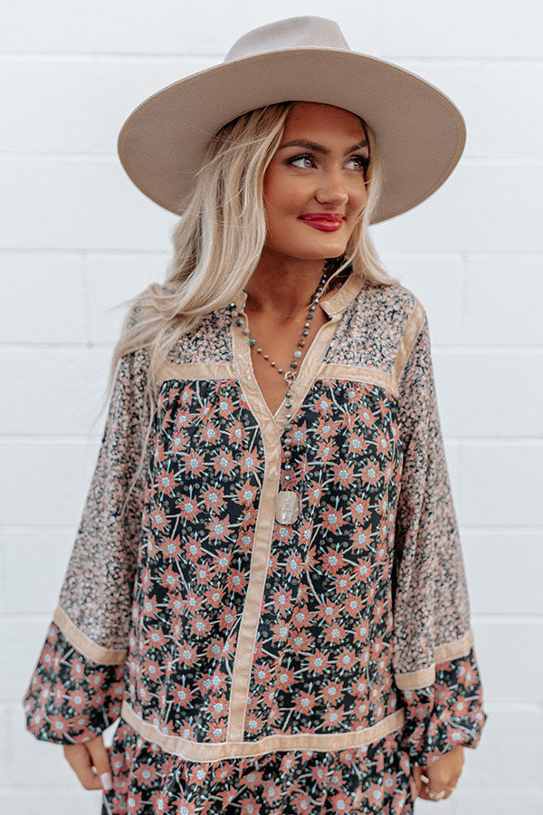 You are guaranteed to be beautiful in our pretty 'By The River Shift Dress' featuring lightweight breezy material patterned with two unique floral prints, a v-cut neckline, long loose sleeves, and a relaxed silhouette that falls into a straight mid-thigh length hemline!