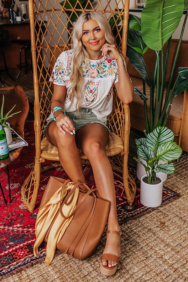Cabana Bound Embroidered Top In Cream