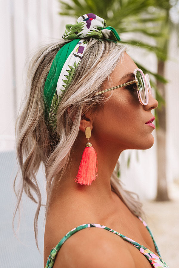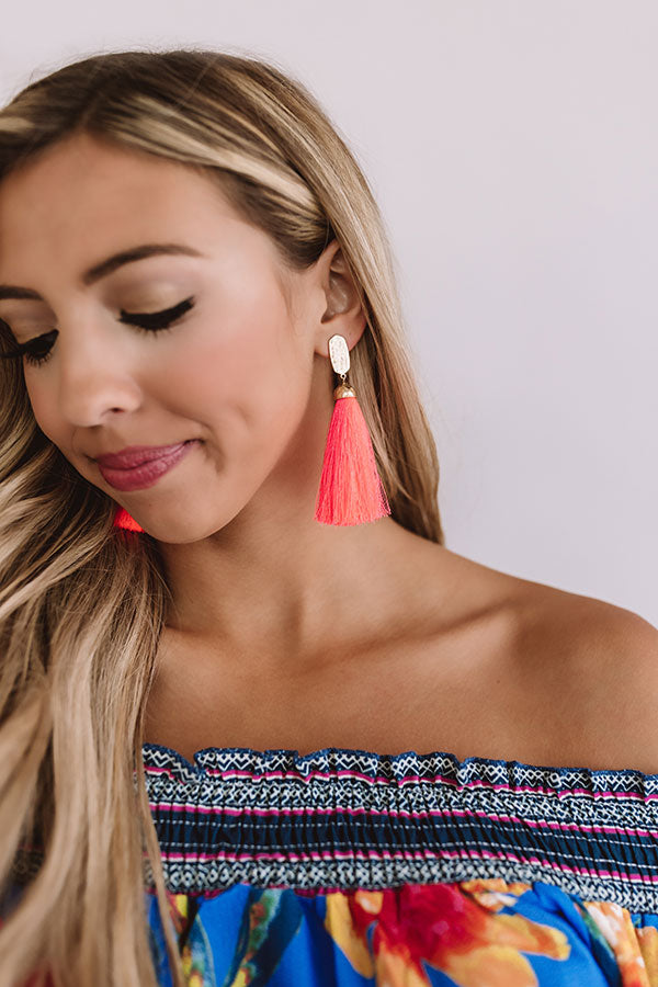 These neon pink statement earrings will distract you from your "cabana fever" with their golden studs and oversized tassels!
