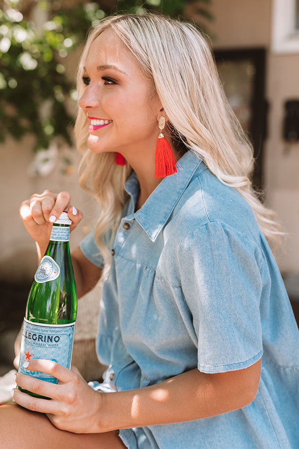 These red earrings will distract you from your cabana fever with their golden studs and oversized tassels!