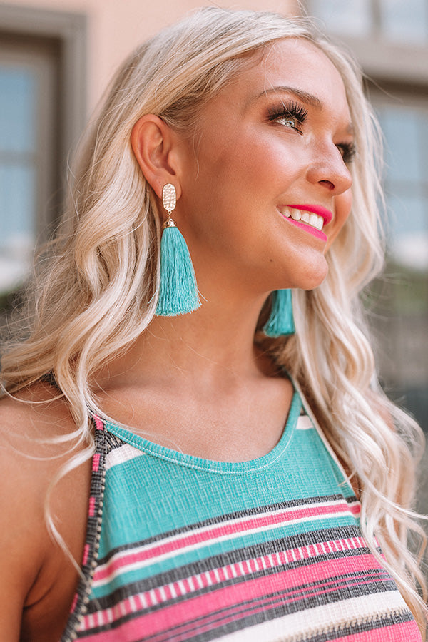 Cabana Fever Tassel Earrings In Turquoise