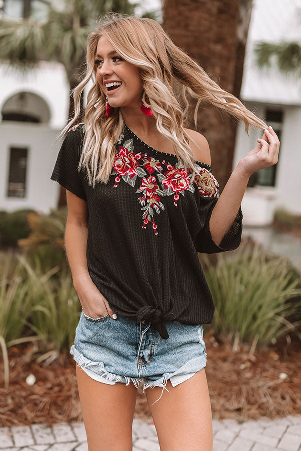 Cabana Life Embroidered Waffle Knit Top in Black