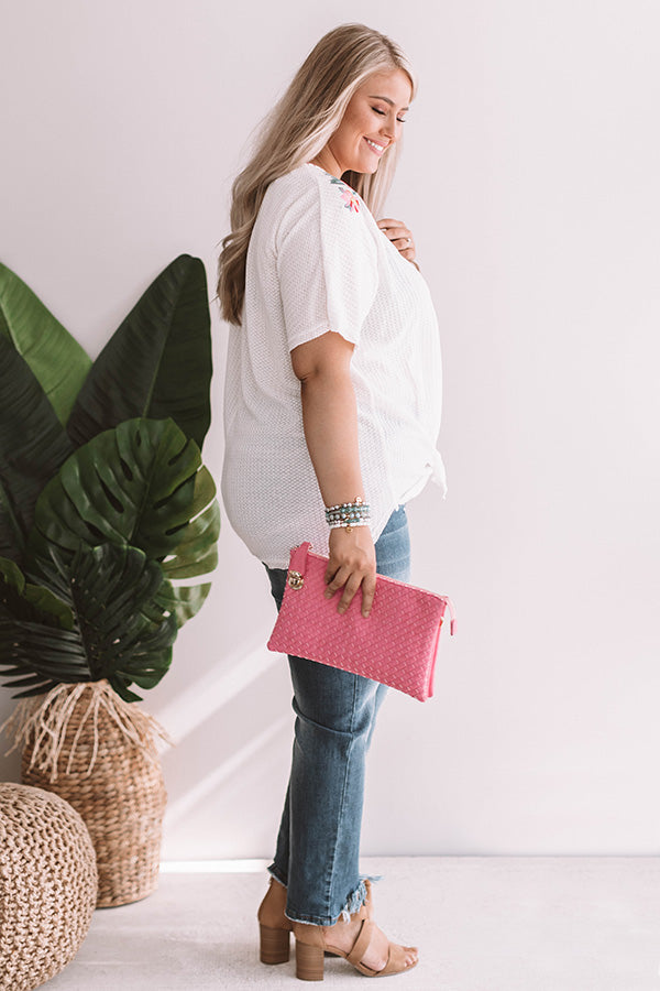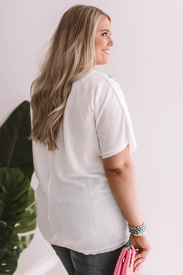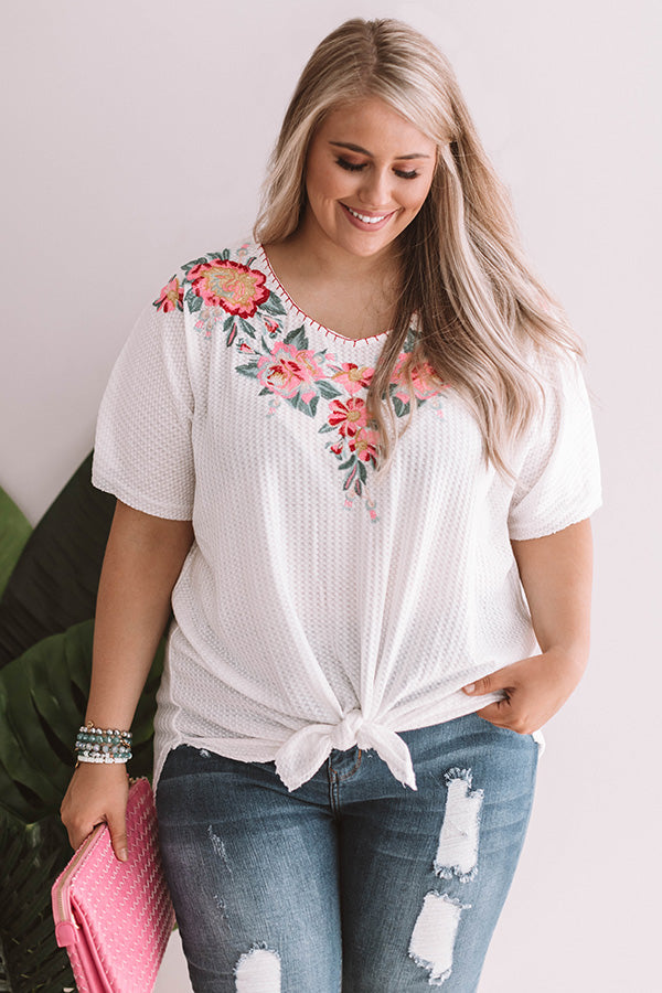 Cabana Life Embroidered Waffle Knit Top in White Curves