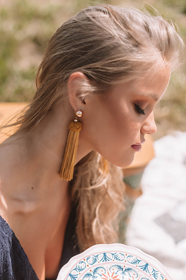 Cabanas And Cocktails Tassel Earrings In Mustard