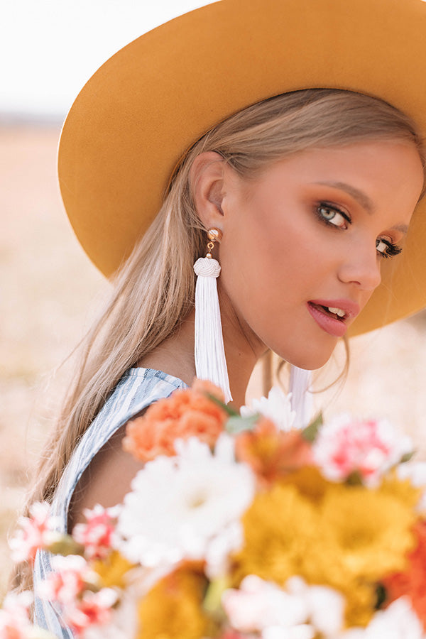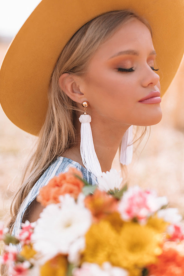 These elegant beauties will have your ears looking extra fabulous this summer with the woven ball and long white tassels!