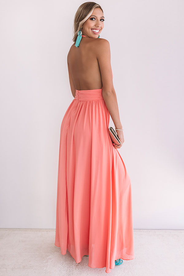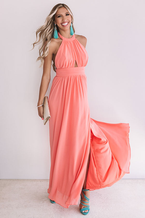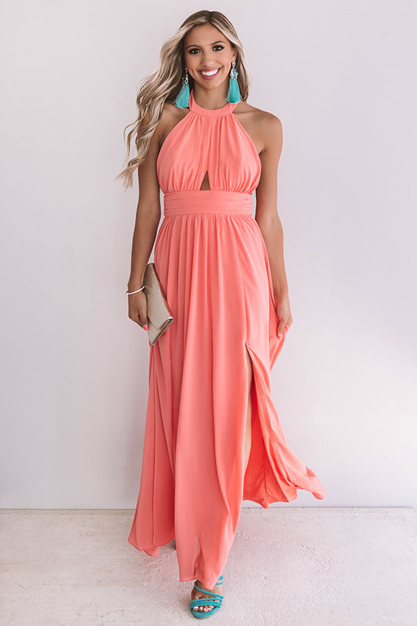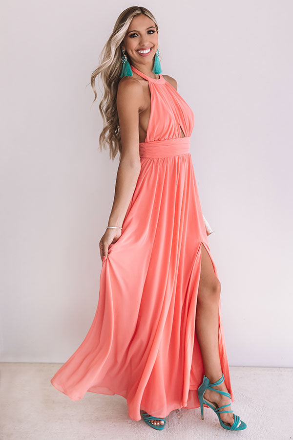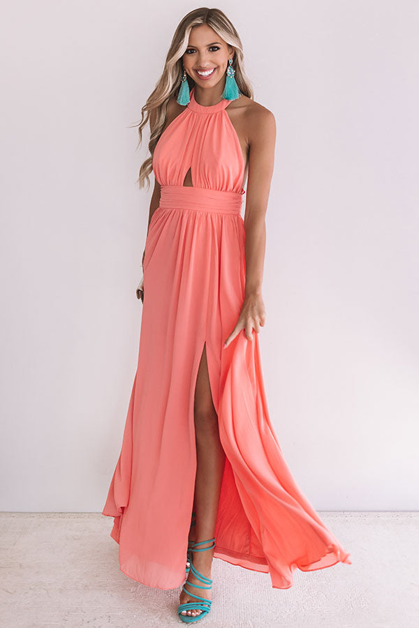 Cabernet Crushing Halter Maxi In Coral