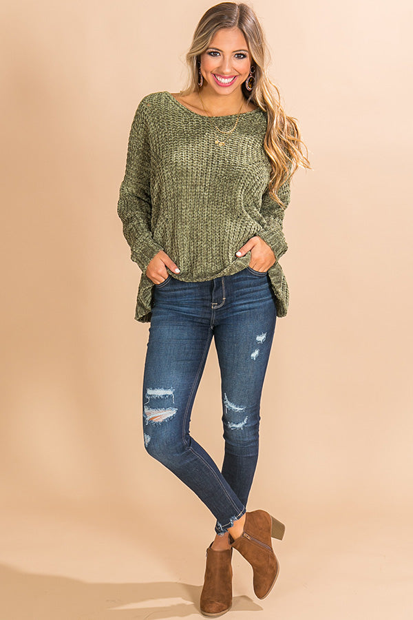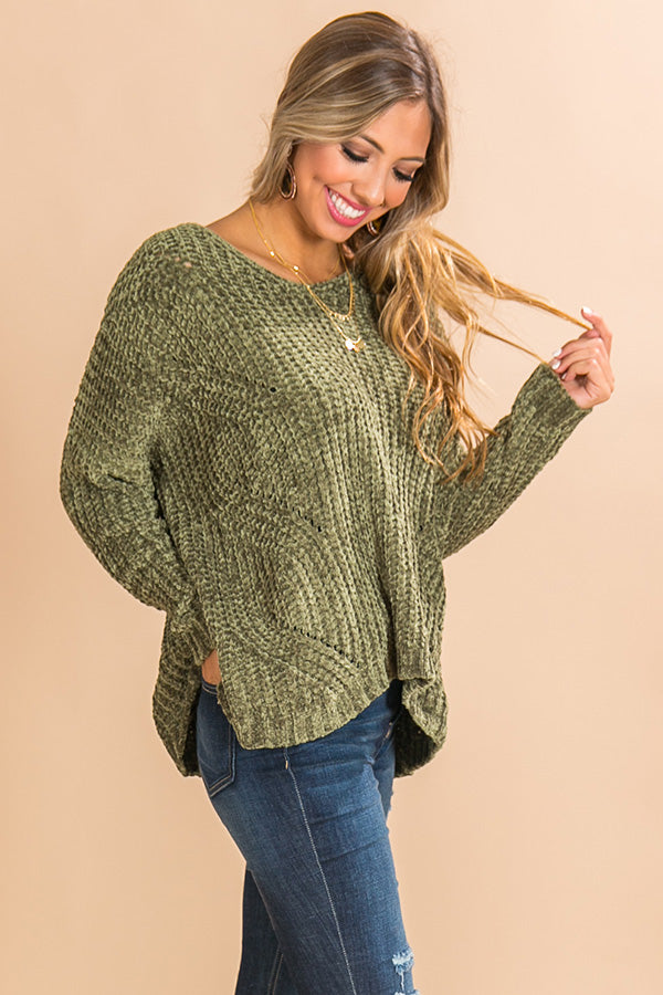 Cabin Getaway Chenille Sweater in Olive