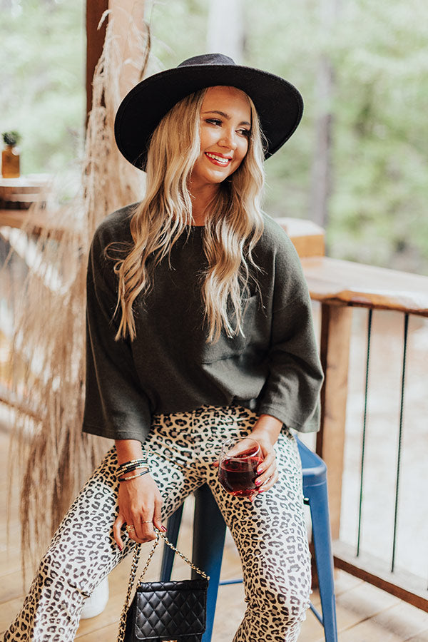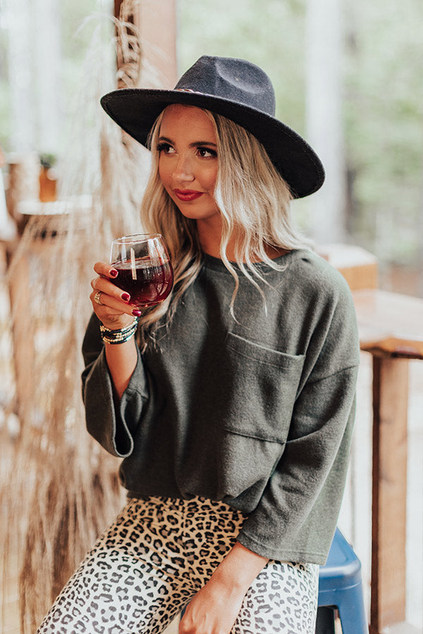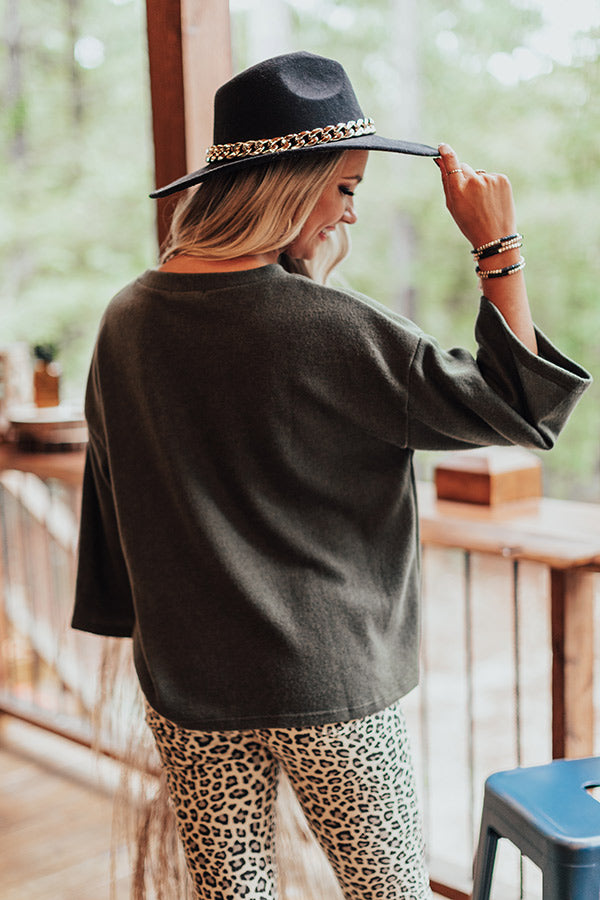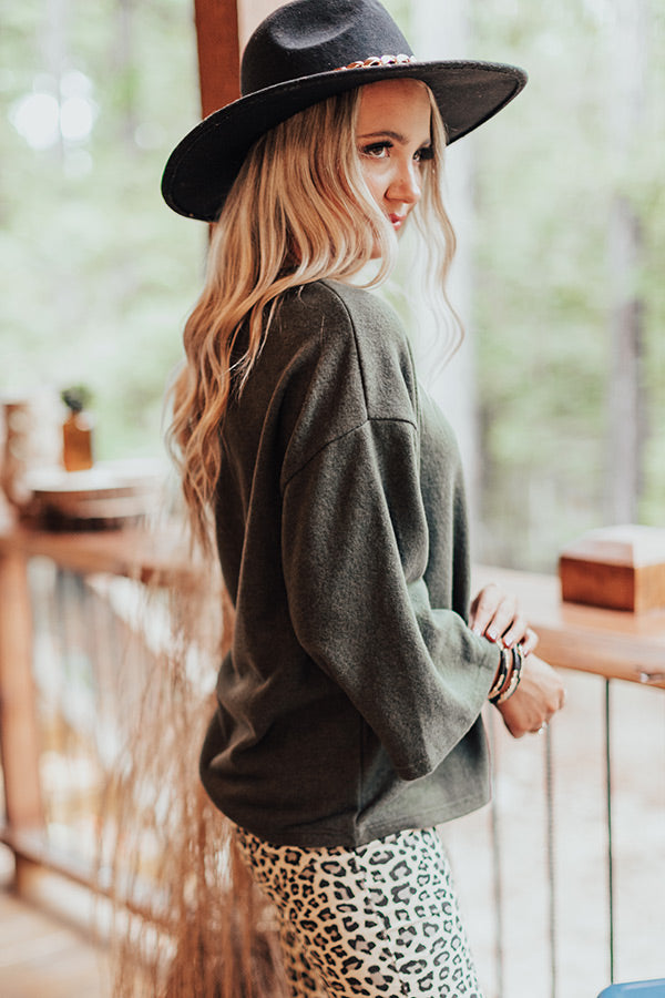 Keep it simple but significant in our casual cute olive colored "Cabin Live Sweatshirt" featuring ultra soft lightweight material, a high rounded neckline, loose 3/4-length sleeves, a single accent chest pocket, and a relaxed silhouette that falls into a straight hemline! Measurements