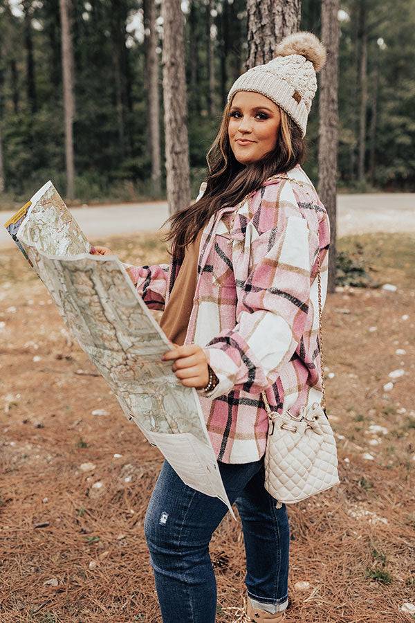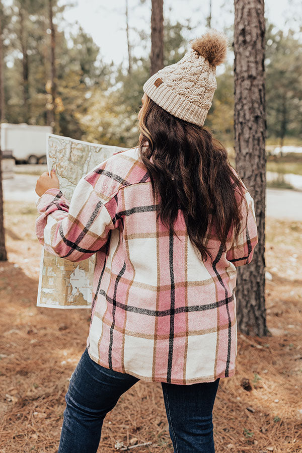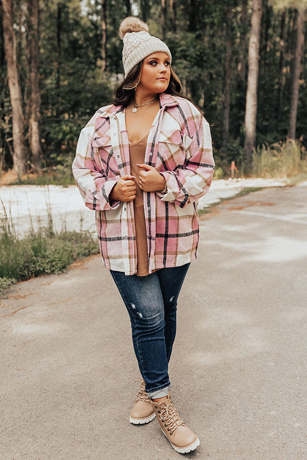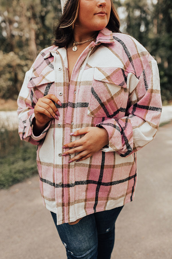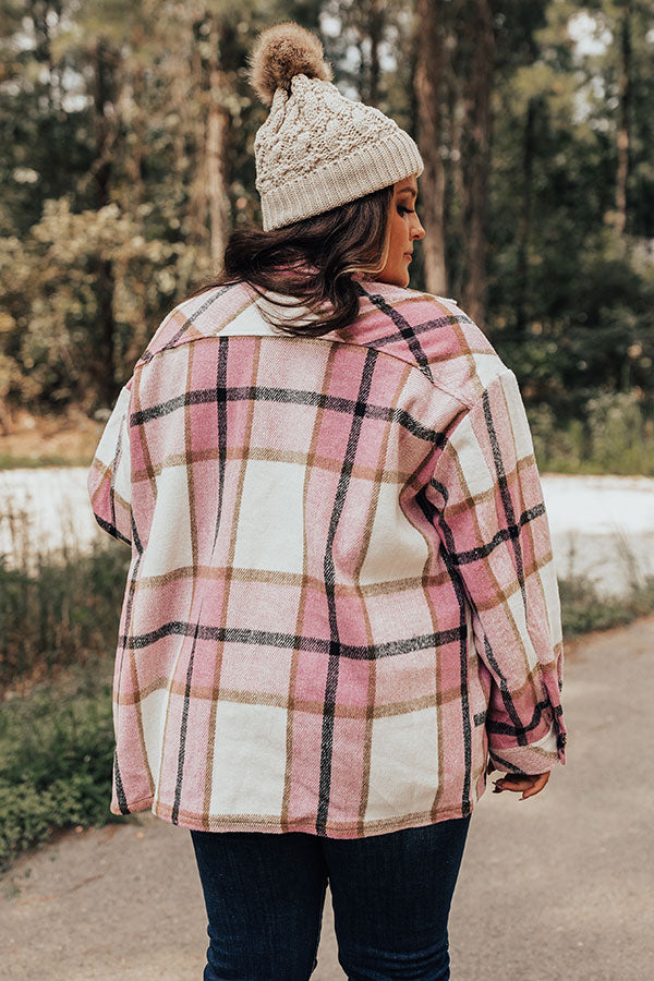 Cabin So Cozy Plaid Jacket In Blush Curves