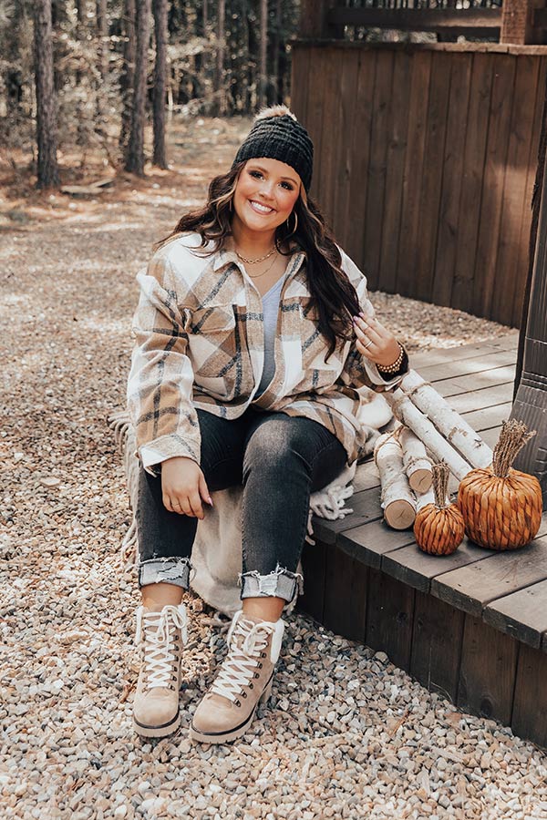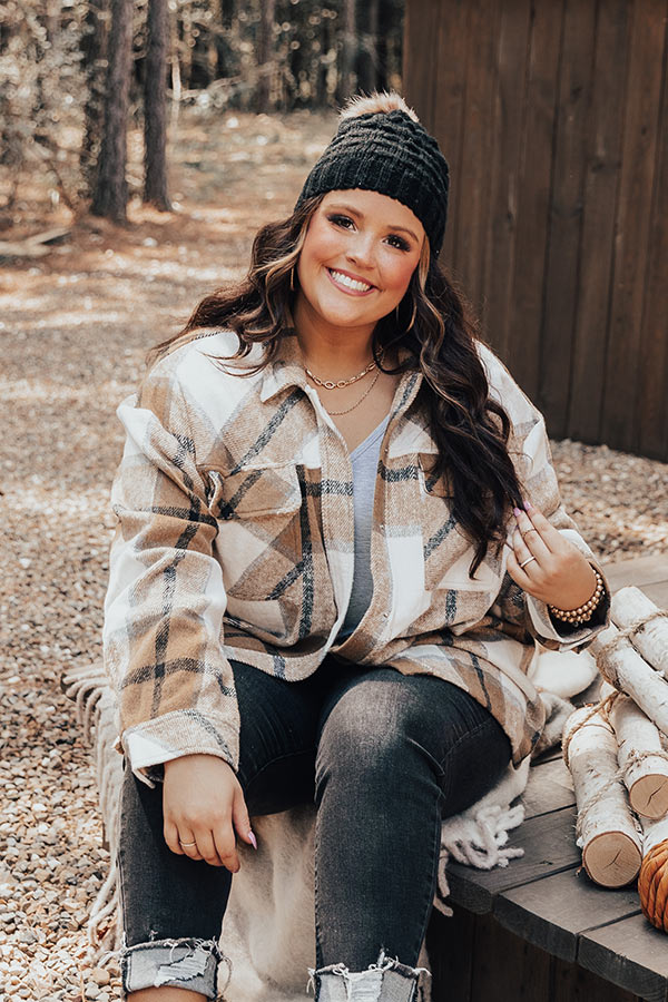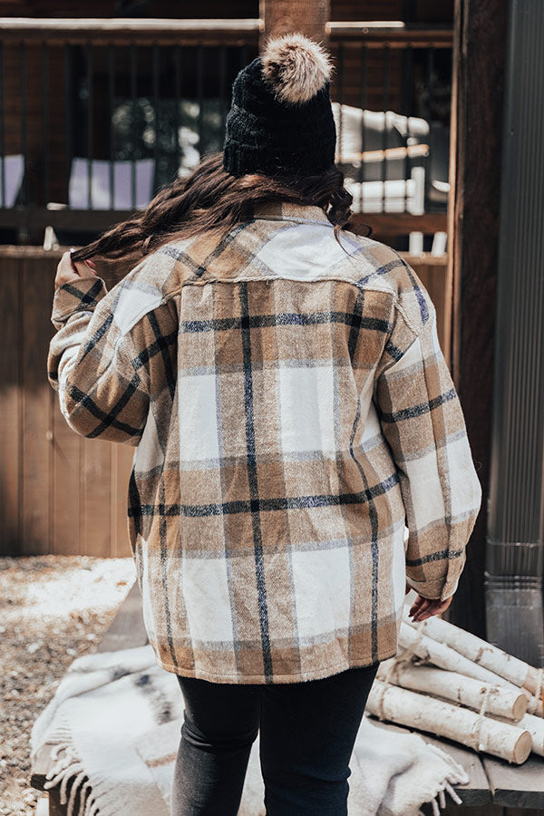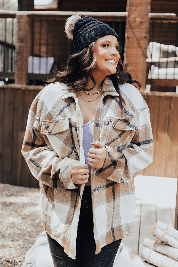 Cabin So Cozy Plaid Jacket In Khaki Curves