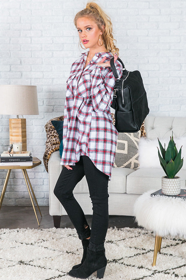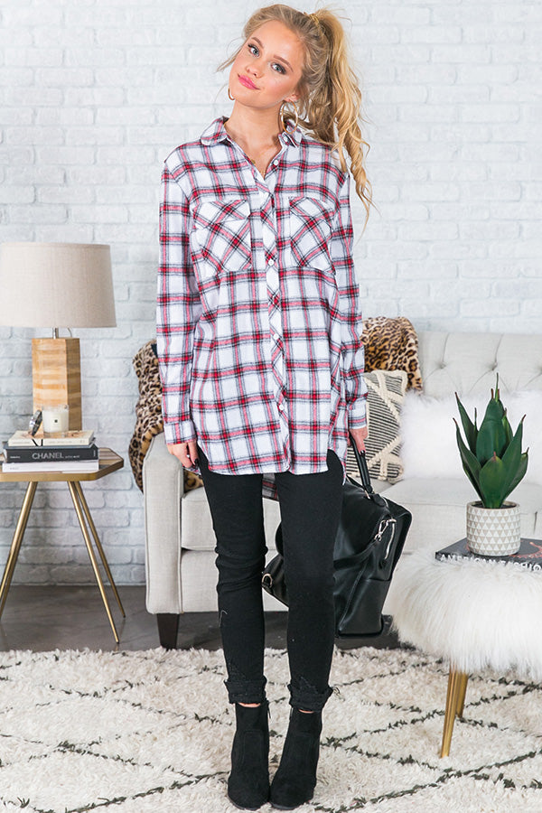 From campus to the cabin, and from coffee to cocktails, the "Cabin Weekend Getaway Plaid Tunic" has got you covered! This timeless plaid flannel tunic has a collared neckline, long roll-tab sleeves, a relaxed button-down bodice with front flap pockets & a great tunic length hem. Keep your look effortless with distressed denim & booties, or add a little warmth to your look with a cargo jacket or quilted vest!