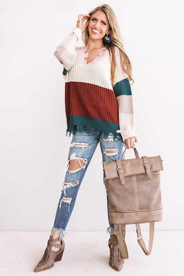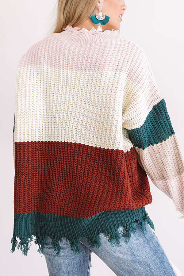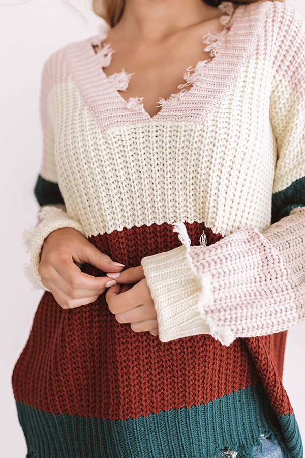There is no better piece to keep you warm while getting those "cabin side cuddles" than this dusty purple sweater featuring a ribbed loose texture, vibrant color block panels, long loose sleeves, a relaxed bodice, and distressed trim detailing on the v-cut neckline and hemline! This unique fall piece can be styled with frayed ankle skinnies and a neutral bootie and backpack, or it can be worn with some black flares, "The Dylan Bootie in Rustic Wine," and our "Swipe Right Earrings in Hunter Green" for a gorgeous OOTD with an edgy personality!