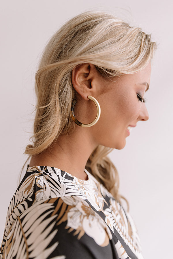 You won't have to daydream about gorgeous jewelry when you add these gorgeous statement earrings to your cart with their thick gold and tortoiseshell print open hoops!