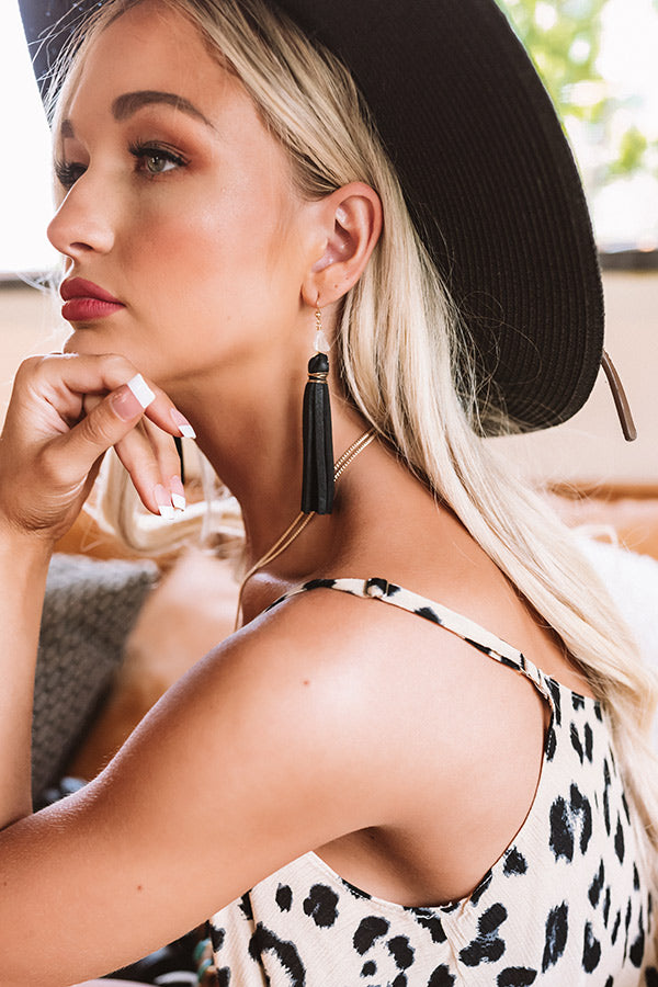 Cabo Quartz Tassel Earrings in Black