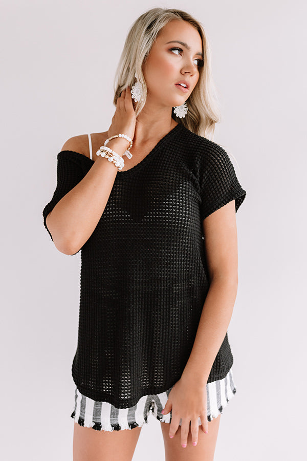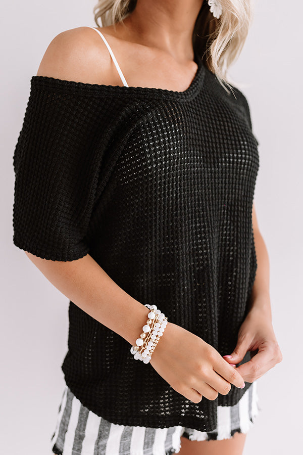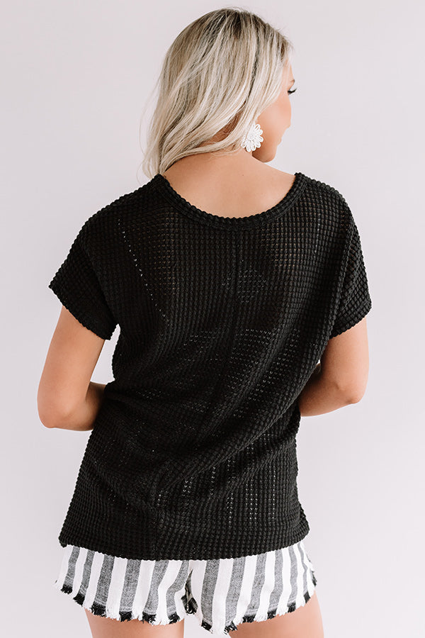 Cafe Crush Waffle Knit Top In Black