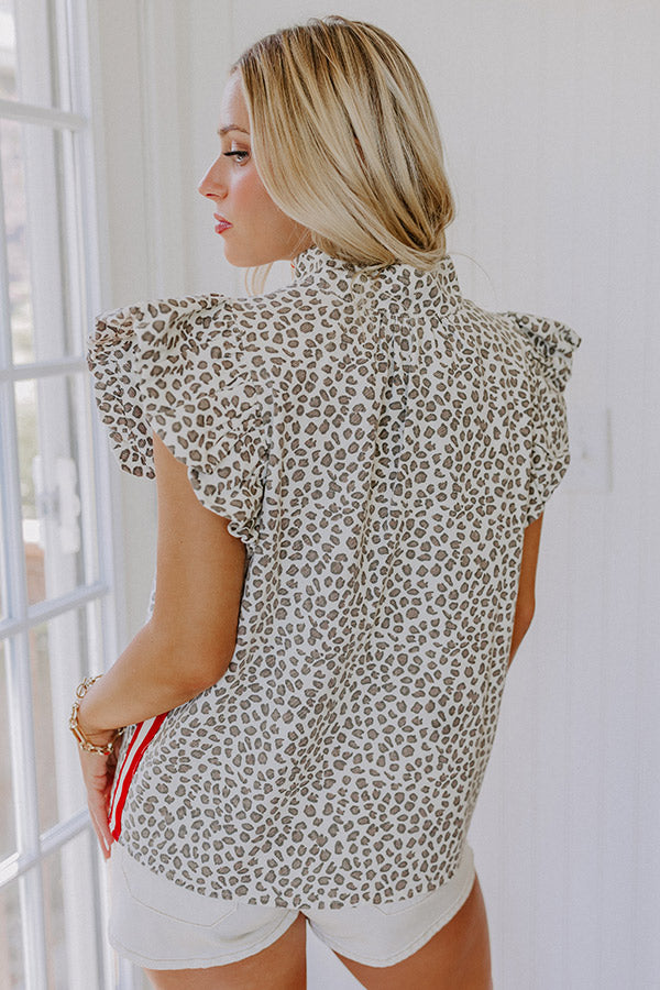 - This stylish denim darling is all about playful chic style. The bold leopard print paired with striped accents makes this cute top a standout piece. Perfect for elevating laid-back looks, it's a must-have for anyone building a fashionable wardrobe.