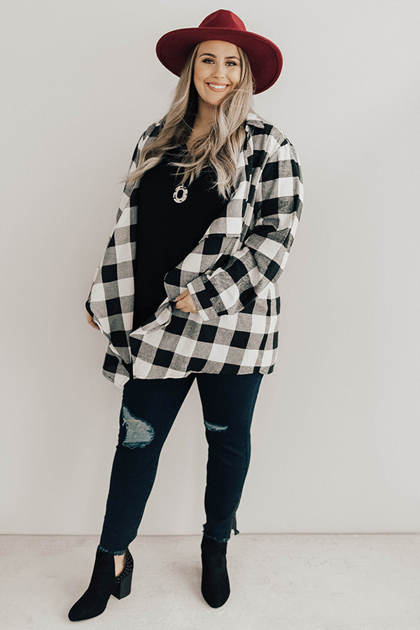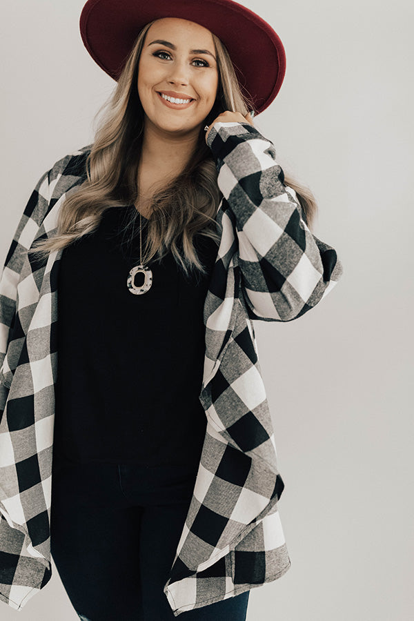 Cali Cuddles Buffalo Check Cardigan in Ivory Curves