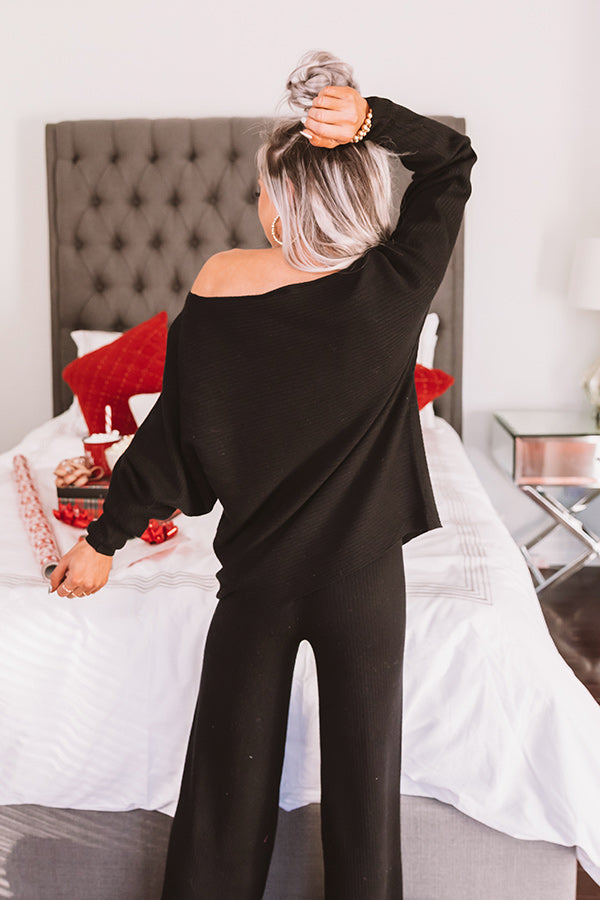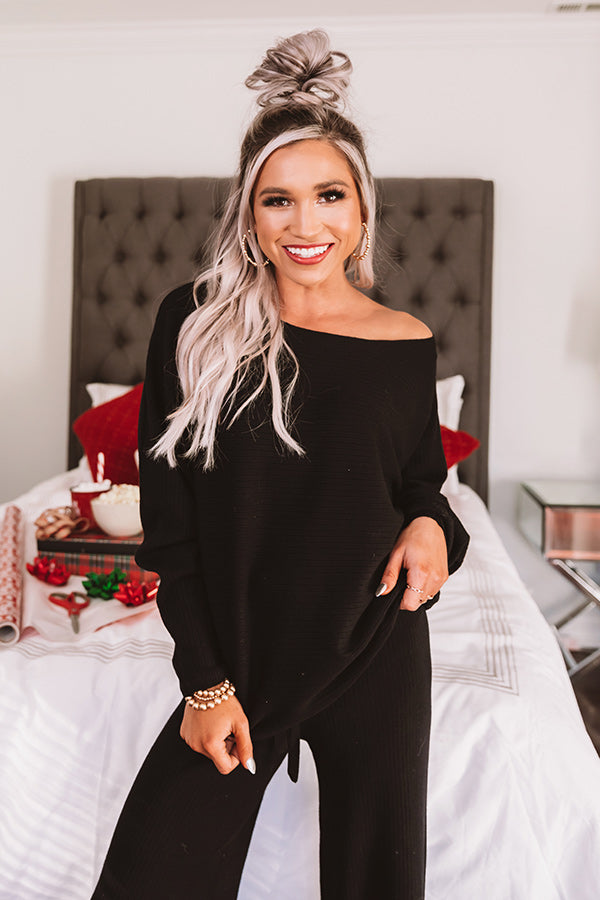You won't find more comfy piece to put on when you call it a day than this adorable back shift sweater featuring soft lightweight material with subtle ribbed texturing, a wide neckline, long loose sleeves that taper into fitted forearm cuffs, and an ultra slouched silhouette that falls into a straight hemline! Style with our matching 'Call It A Day Pants in Black' for the ultimate lounge set! Measurements
