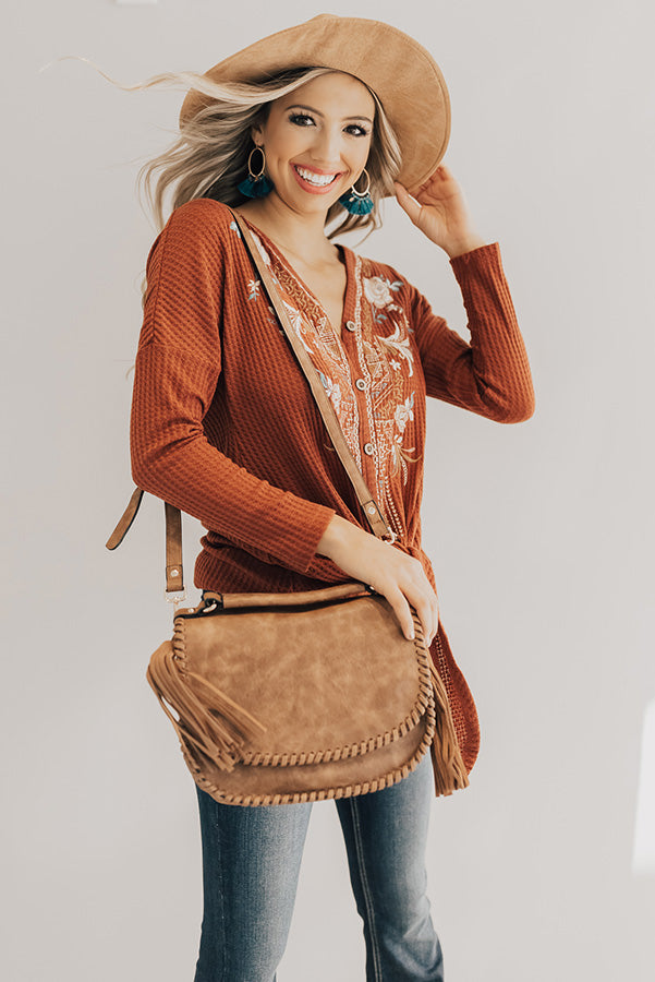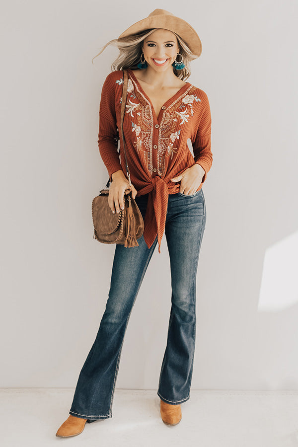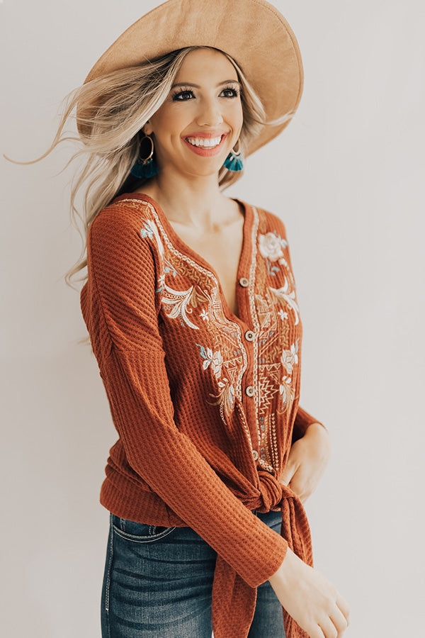 Call It Fall Embroidered Waffle Knit Top In Rust