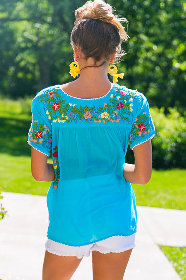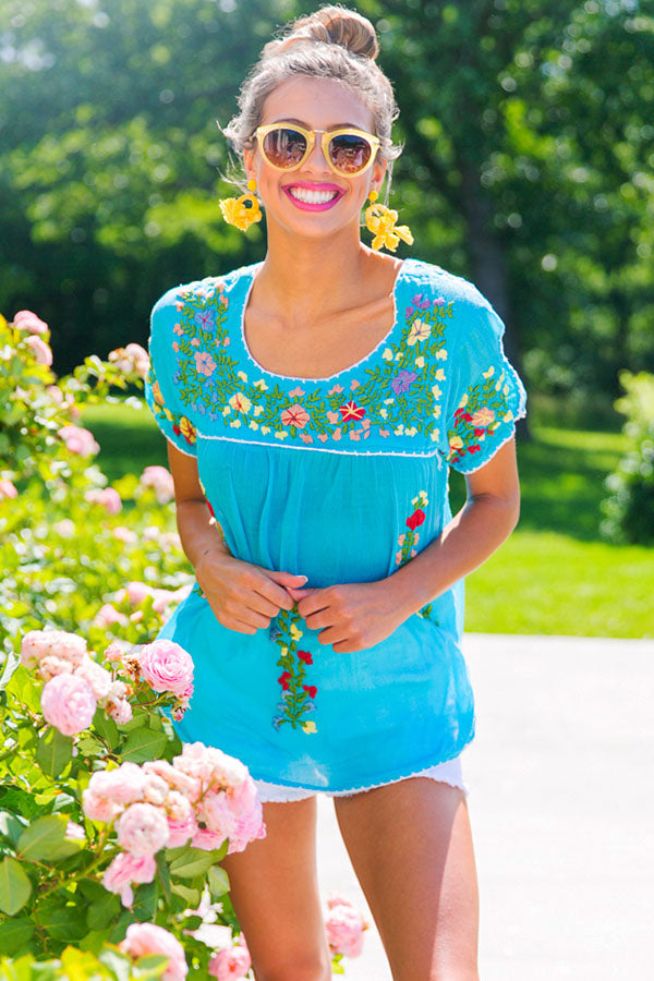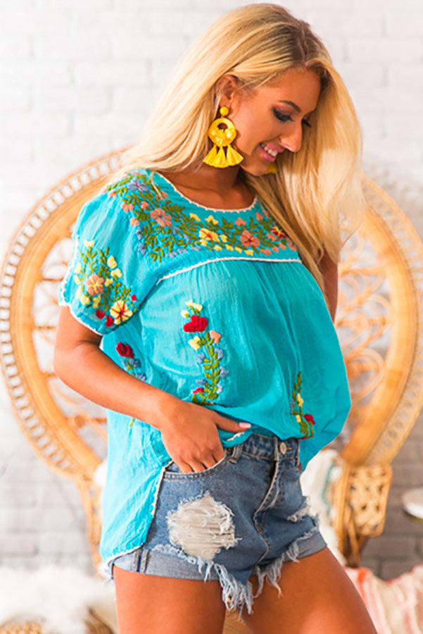 BLOOM Bloom Pow! The "Call Me Beautiful Embroidered Top" is the flower-filled find we have been dreaming of! This blooming beauty has a round neckline, short sleeves & a breezy cotton bodice with gorgeous colorful floral embroidery throughout. Complete your look with your favorite denim cut-offs, sunnies & a colorful statement earring for a vibrant look that is femme, fun & full of personality!