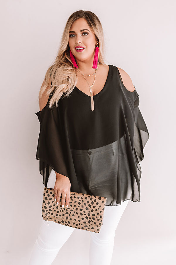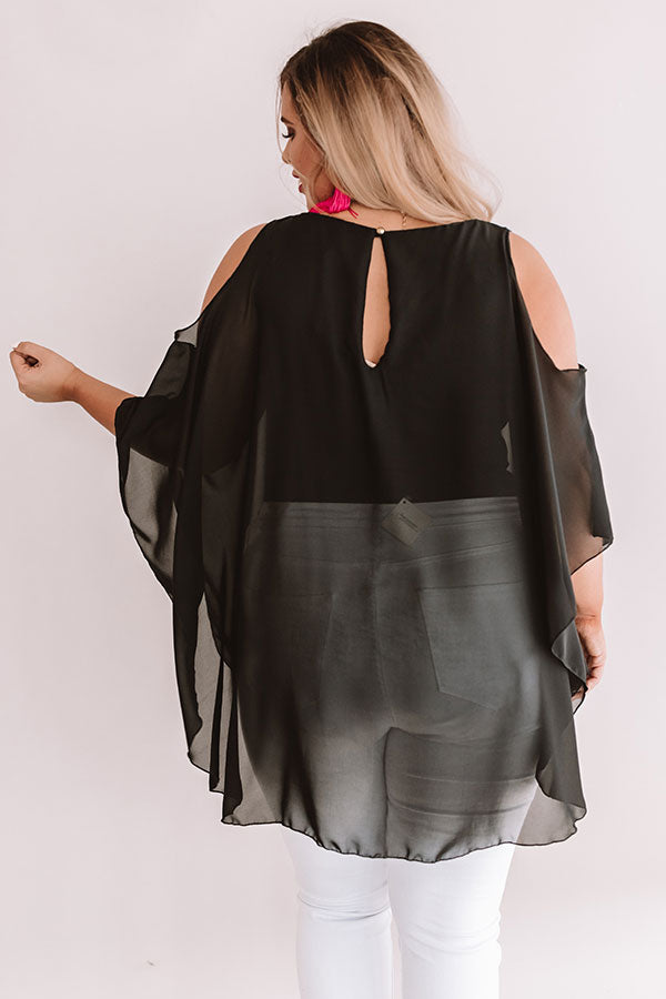 Plus Size - We guarantee people will be calling you chic when you wear this black beauty with its cutout sleeves, sheer flowy fabric, and keyhole cutout with a button closure in the back! In this picture, this piece is being worn under white bottoms, but due to its versatility, it can be worn as a romper or a bodysuit/blouse for multiple different styles! Measurements