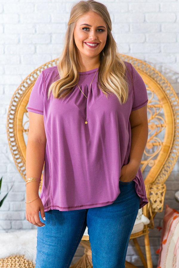 From lounging on the couch binging Netflix, to running errands around town, this basic everyday tee has got you covered! This short sleeve shift tee has a round pleat accented neckline, an ultra soft cotton modal bodice & exposed seams throughout. Style this comfy closet essential with your favorite denim for a casual cool OOTD!